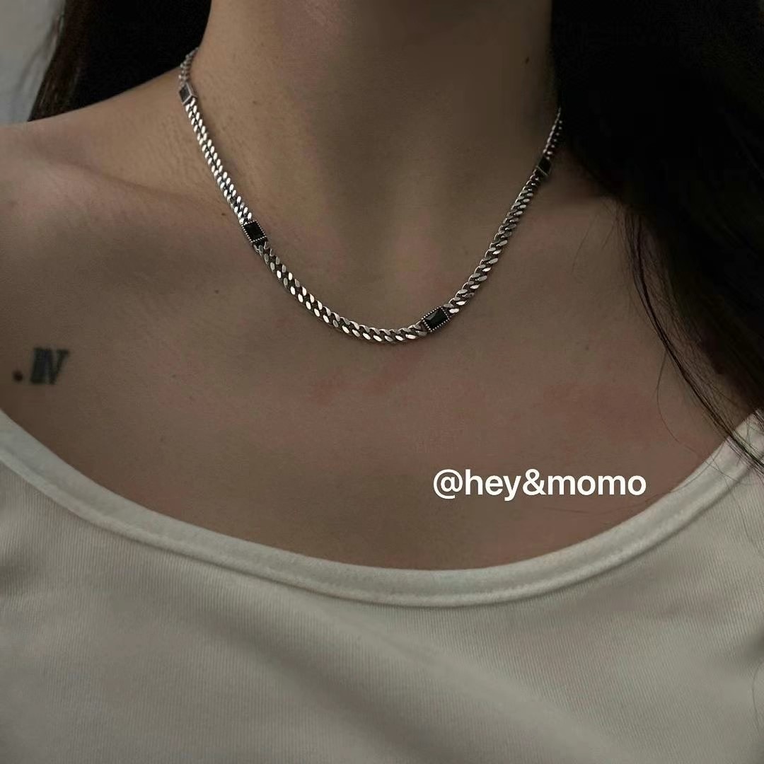 图款 ⚪️925 银 黑曜石坦克链 重工个性项链 69000