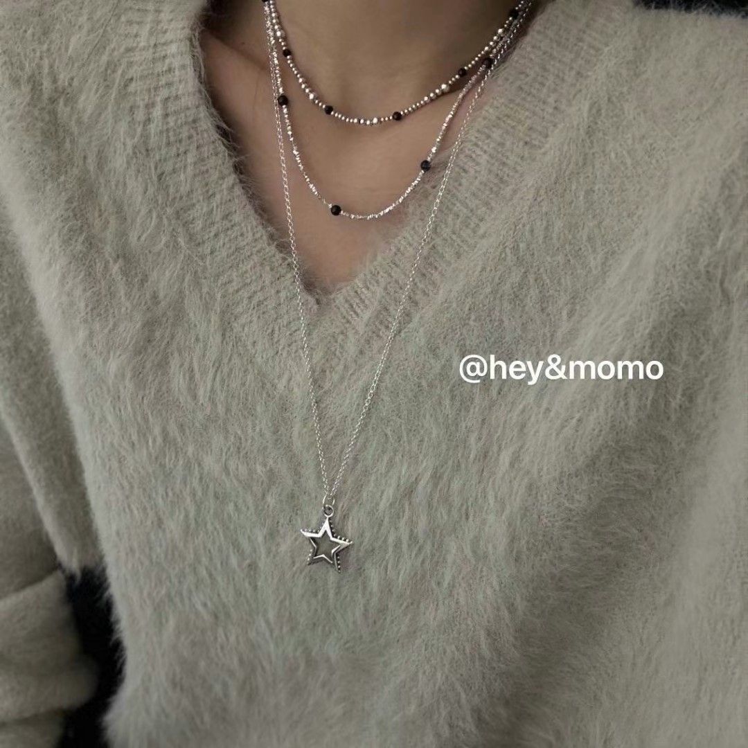 图款 ⚪️925 银 重工镂空五角星吊坠项链 43000