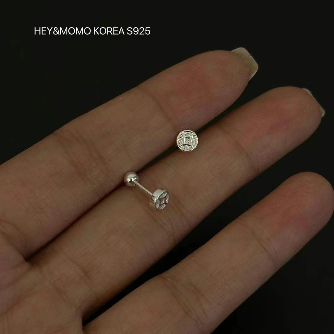 图款 925银 招财钱币白钻耳骨钉 7000