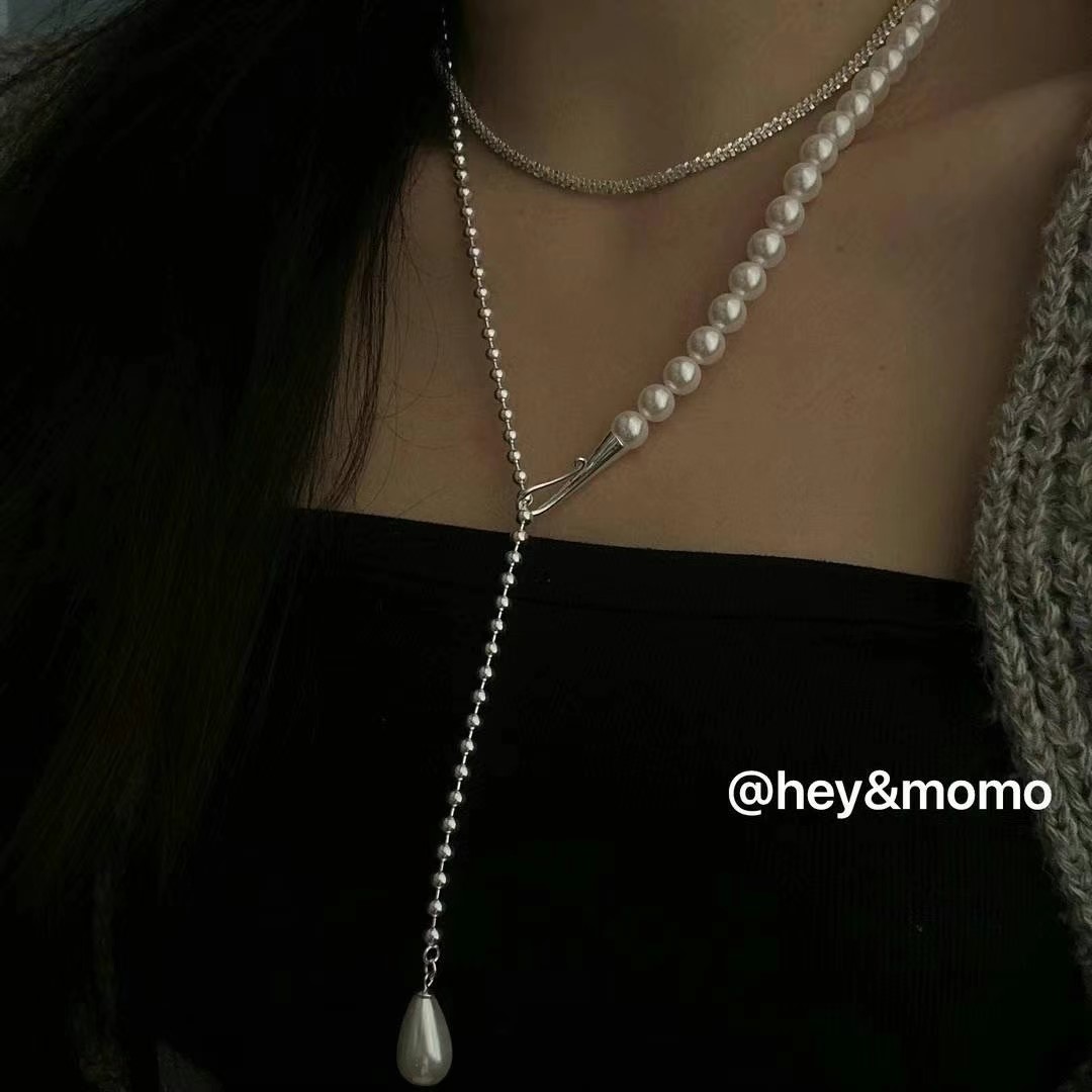 图款 ⚪️925 银 水滴珍珠 银球拼接项链 79000