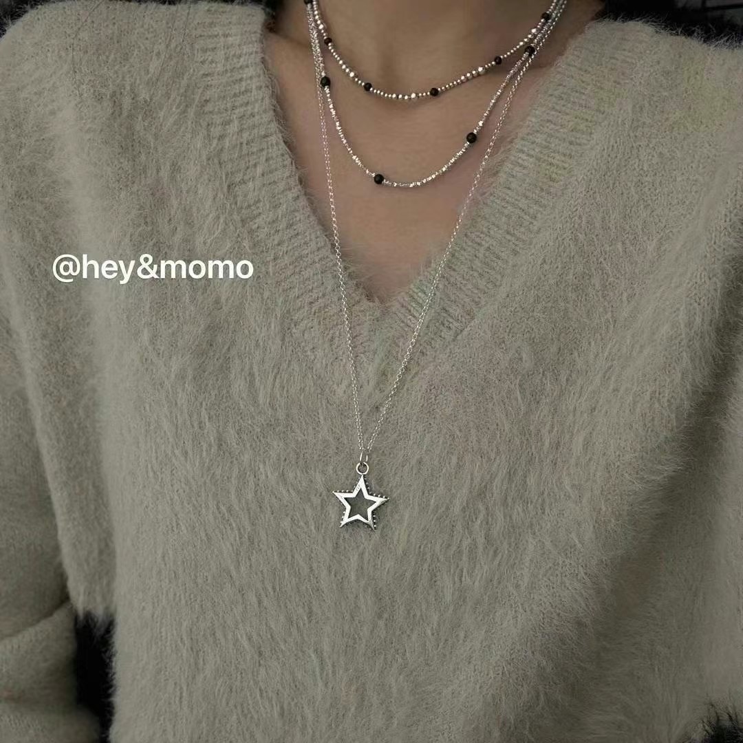 图款 ⚪️925 银 重工镂空五角星吊坠项链 45000