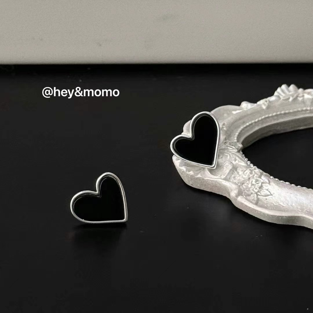 图款 ⚪️925 银 黑玛瑙俏皮大爱心耳钉 24000