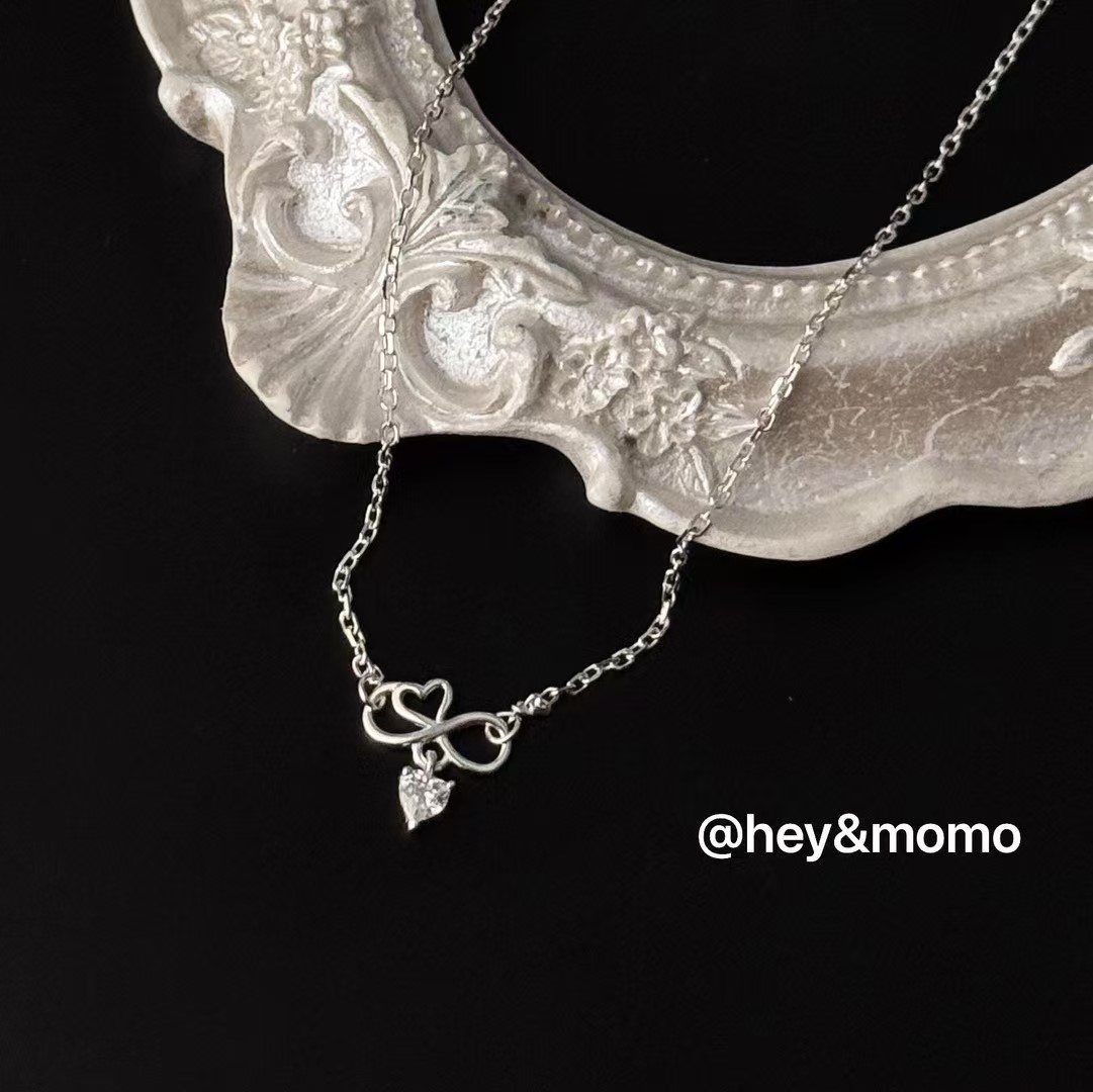 图款 ⚪️925 银 线条爱心➕水晶吊坠 简约项链11000