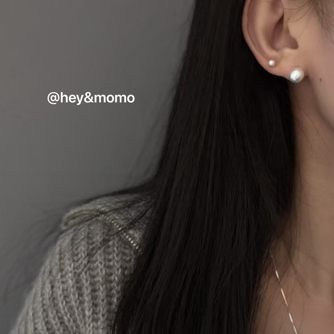 图款 ⚪️925 银 大小磨砂银球 可正反两戴耳钉 13000