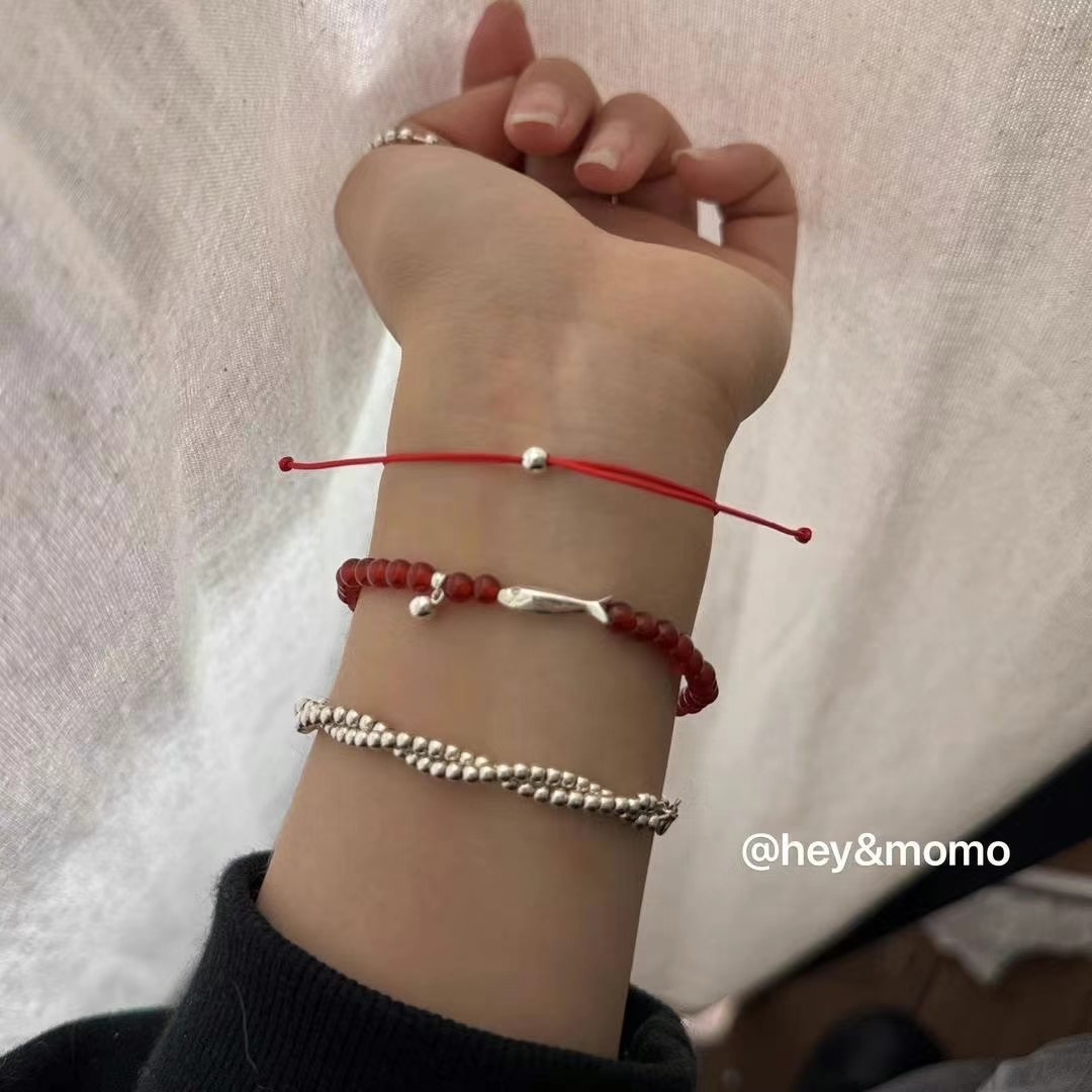 图款 ⚪️925 银 磨砂爱心抽拉红绳手链 10000