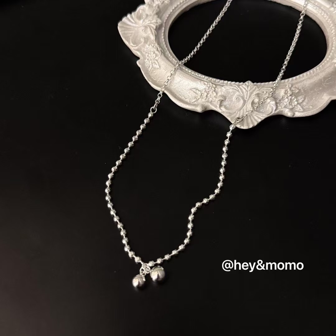 图款 ⚪️925 银 切割面银球拼接链条➕银球樱桃造型 简约项链 29000