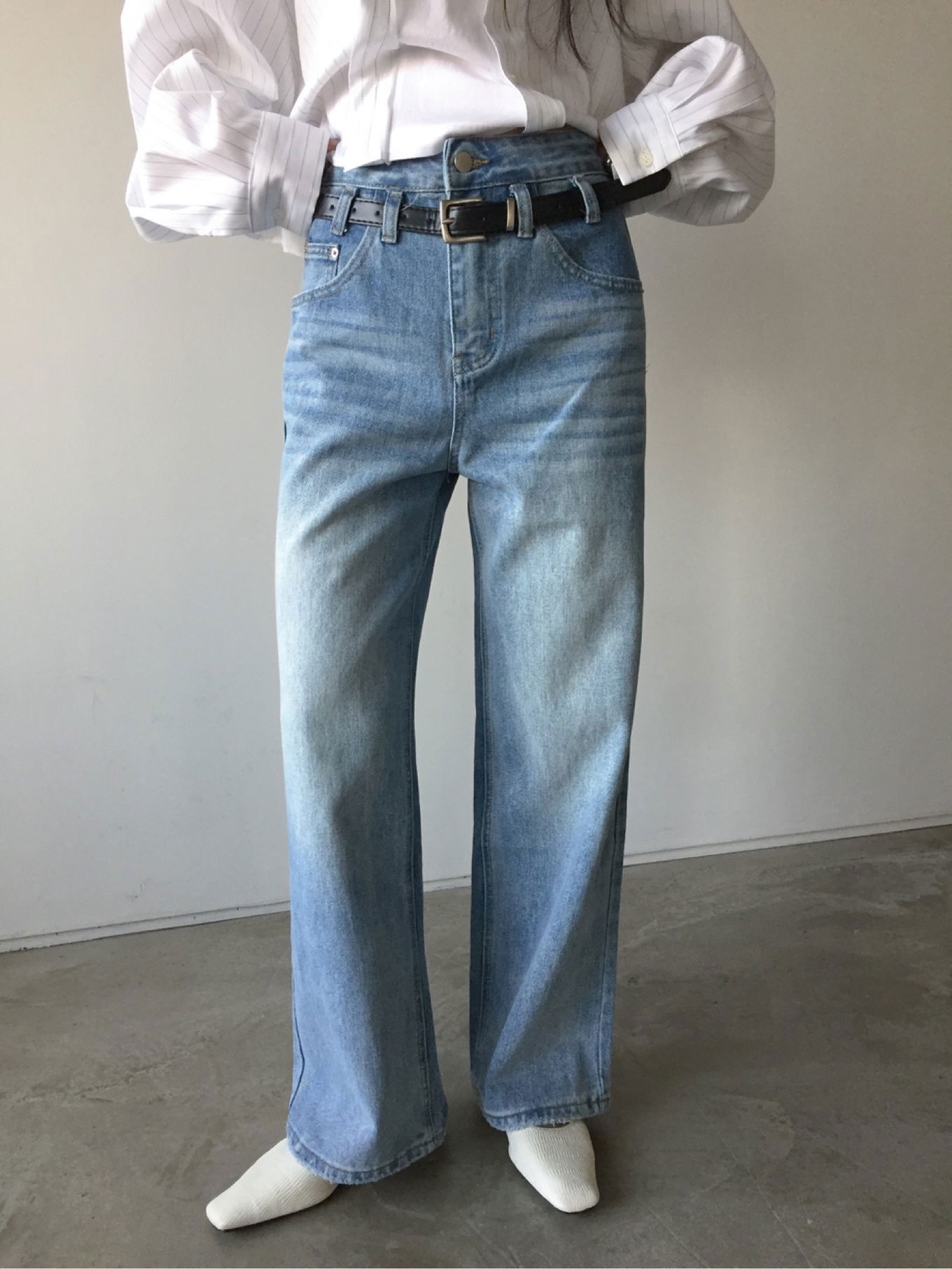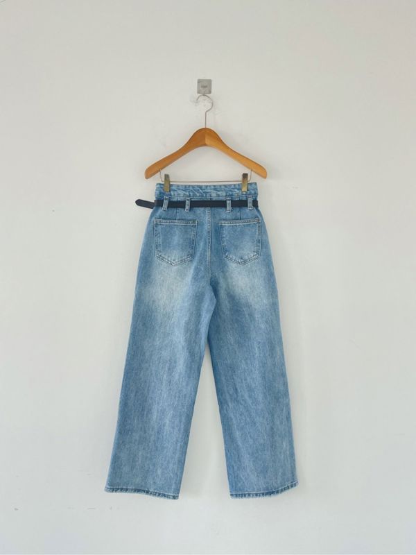 Wide denim with belt