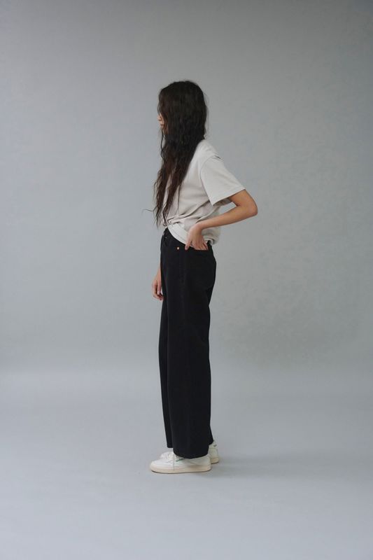 直筒风格的轮廓干净利落的外观,经过正常水洗可感受柔软材质感和情调。