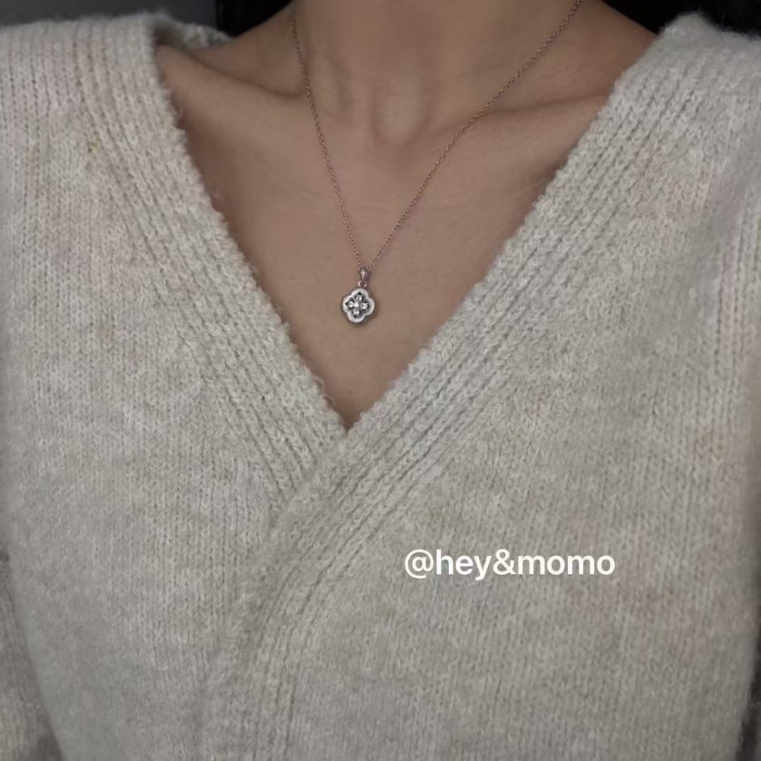 图款 ⚪️925 银 韩系ins风 拉丝四叶草➕施华洛钻 简约项链 20000