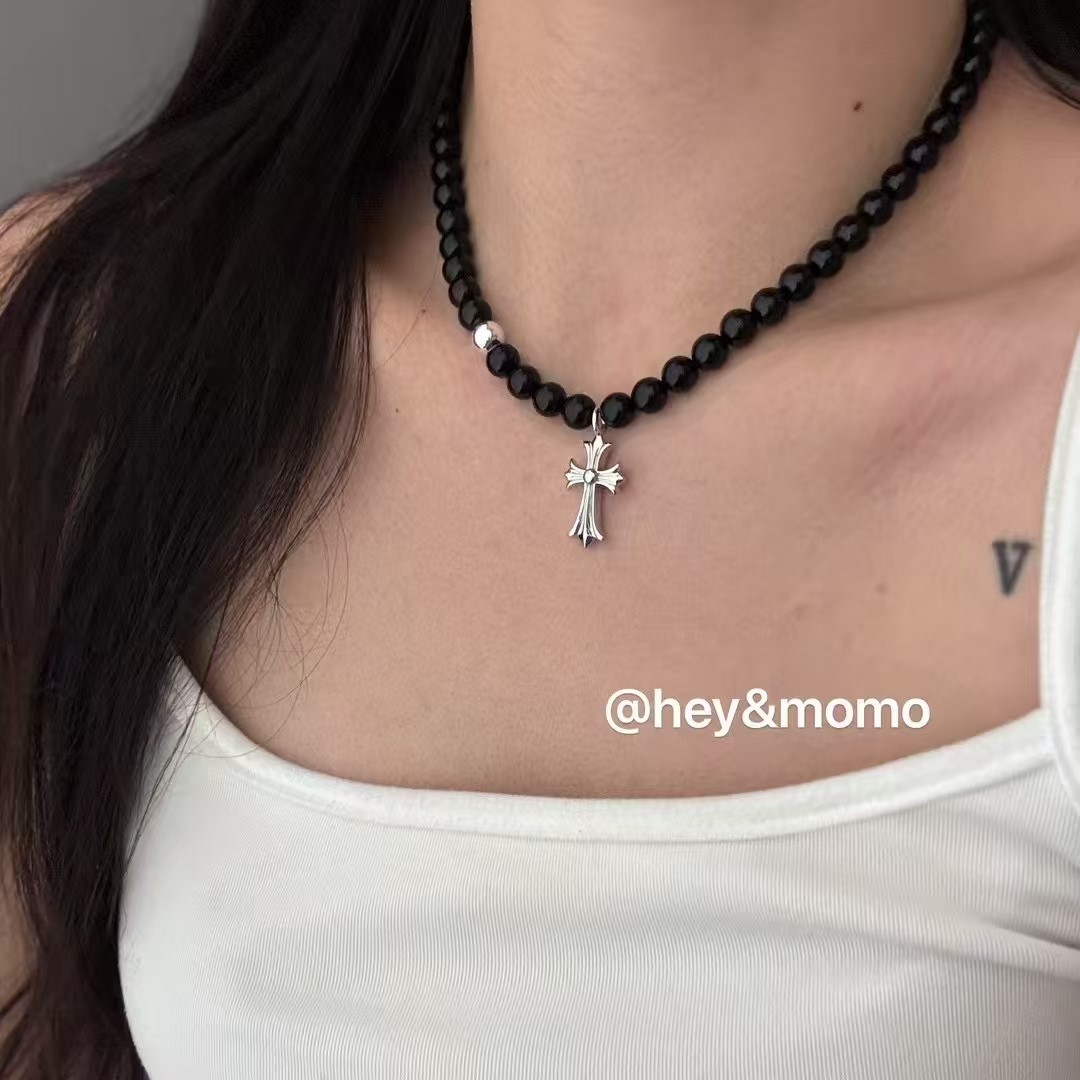 图款 ⚪️925 银 大颗黑玛瑙➕银球 双面十字架吊坠 项链 36000