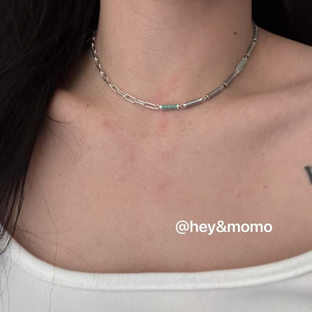 图款 ⚪️925 银 重工实心银块镶嵌施华洛钻➕别针链拼接 项链 69000
