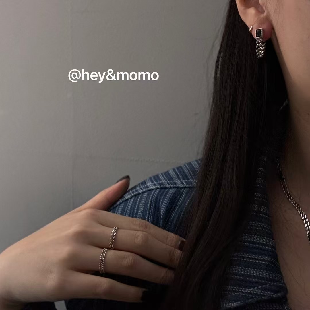图款 ⚪️925 银 黑曜石坦克链 重工个性后戴式耳钉 18000