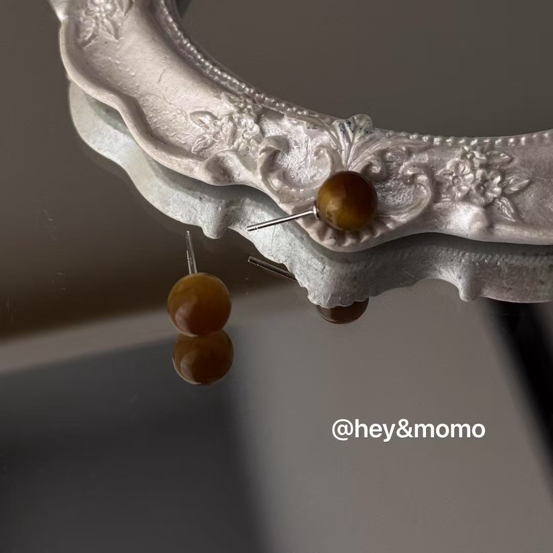 图款 ⚪️925 银 天然虎眼石 耳钉 3000