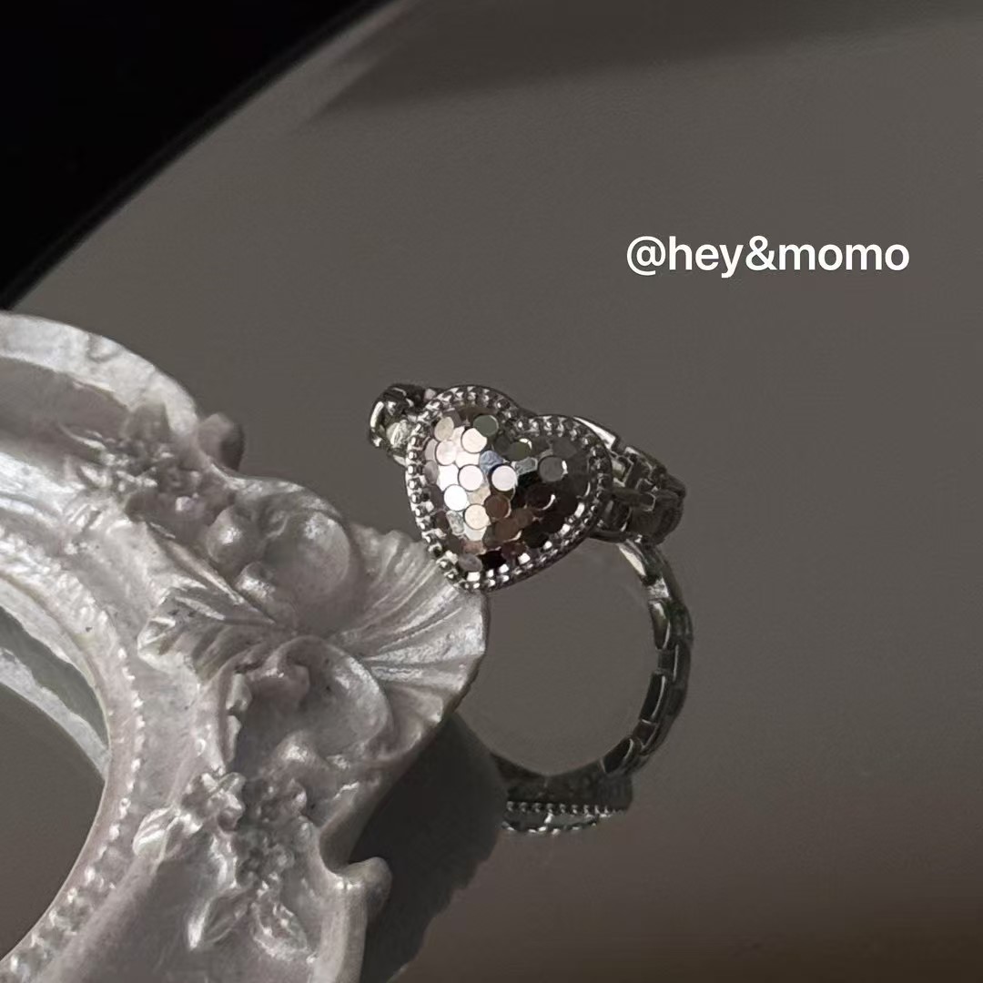 图款 ⚪️925 银 碎碎冰爱心 表带链造型 重工戒指 15000