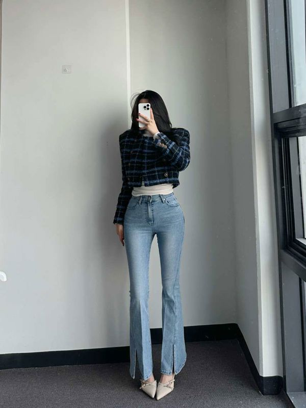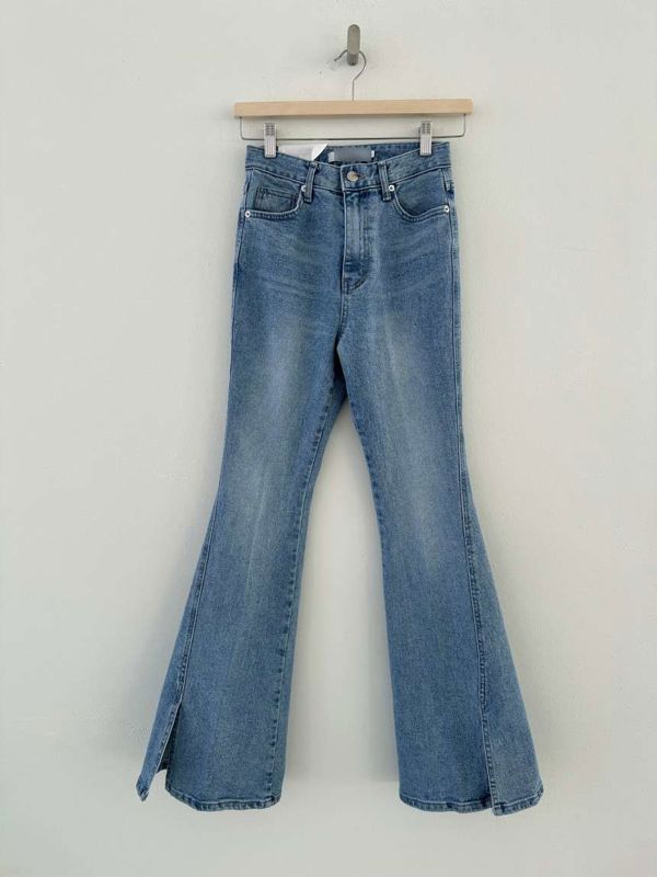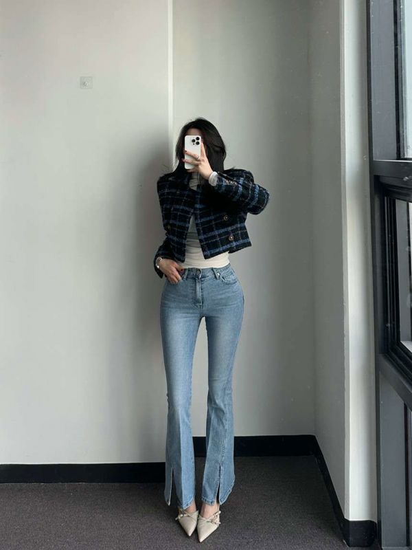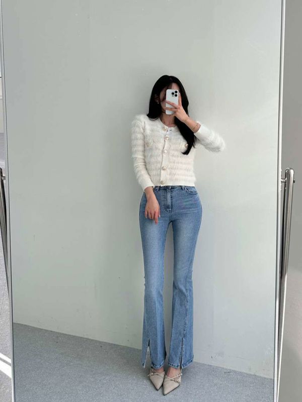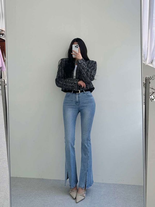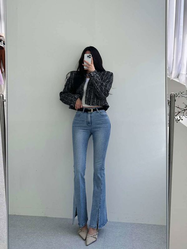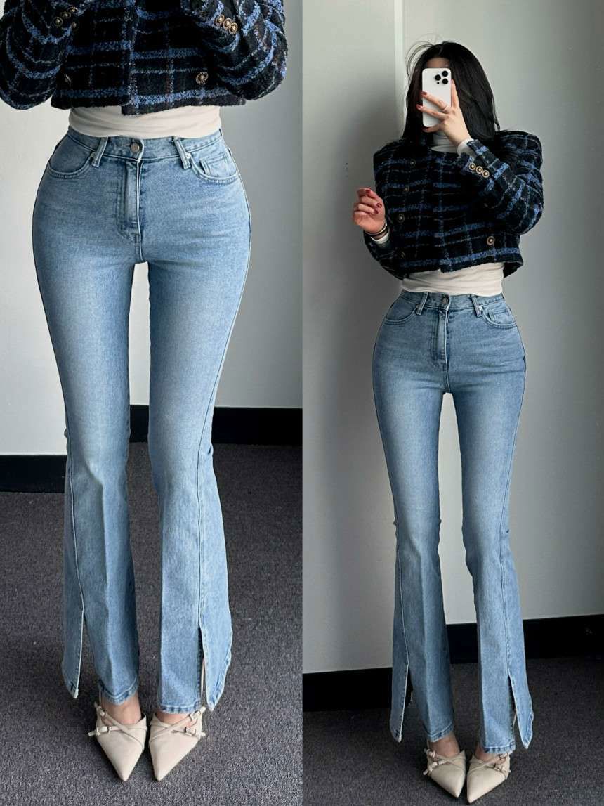 浅色开叉喇叭裤니즈 레직기 롱 부츠컷