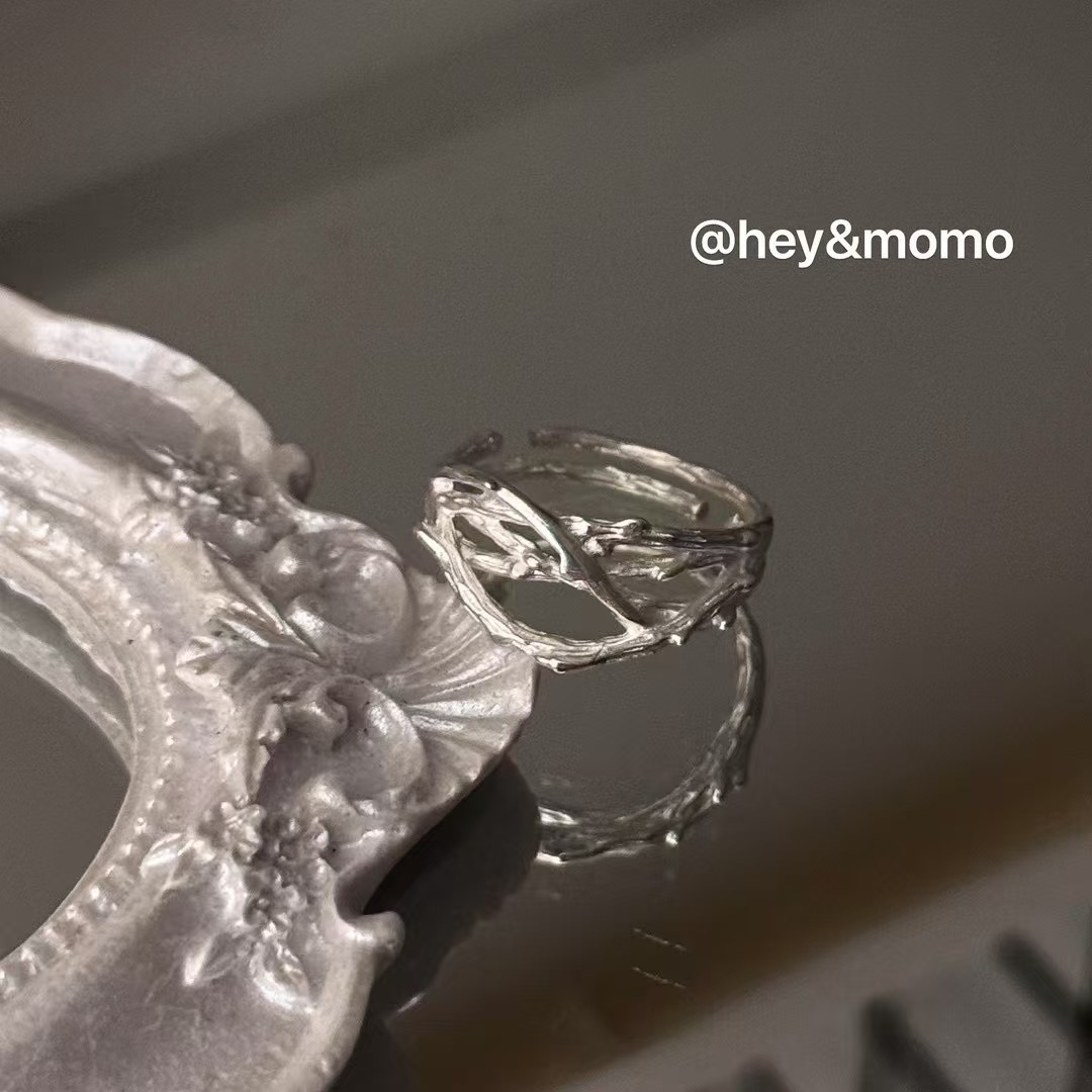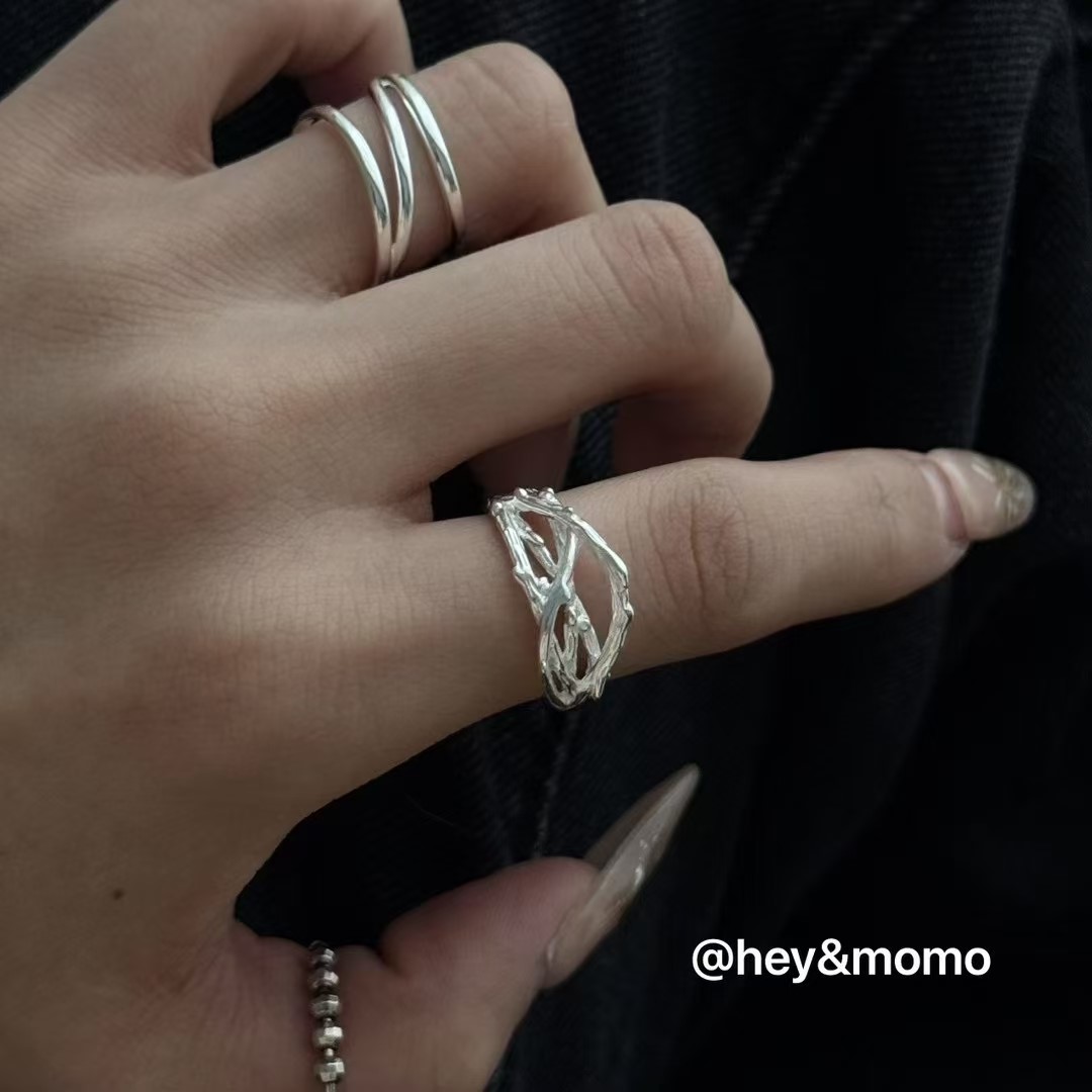 图款 ⚪️925 银 ins风不规则树枝 纹理个性戒指 15000