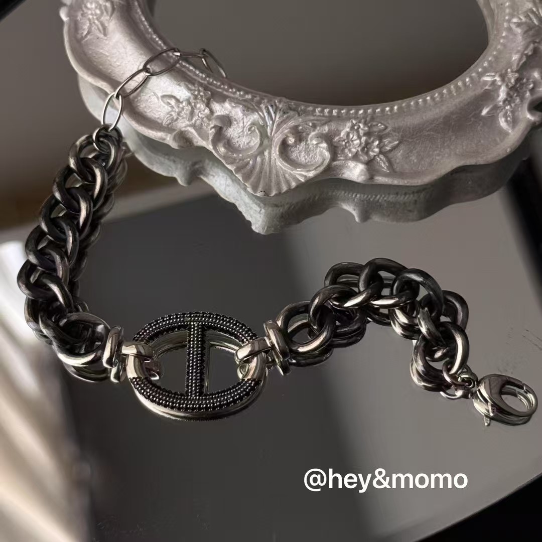 图款 ⚪️925 银 微镶黑钻猪鼻 重工链条 可双面戴手链 109000