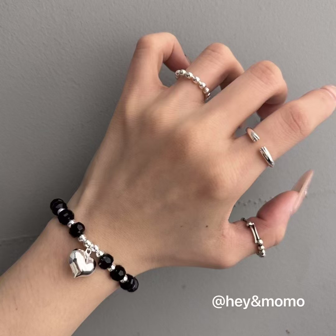 图款 ⚪️925 银 黑水晶➕胖胖爱心吊坠 弹力绳手链 18000