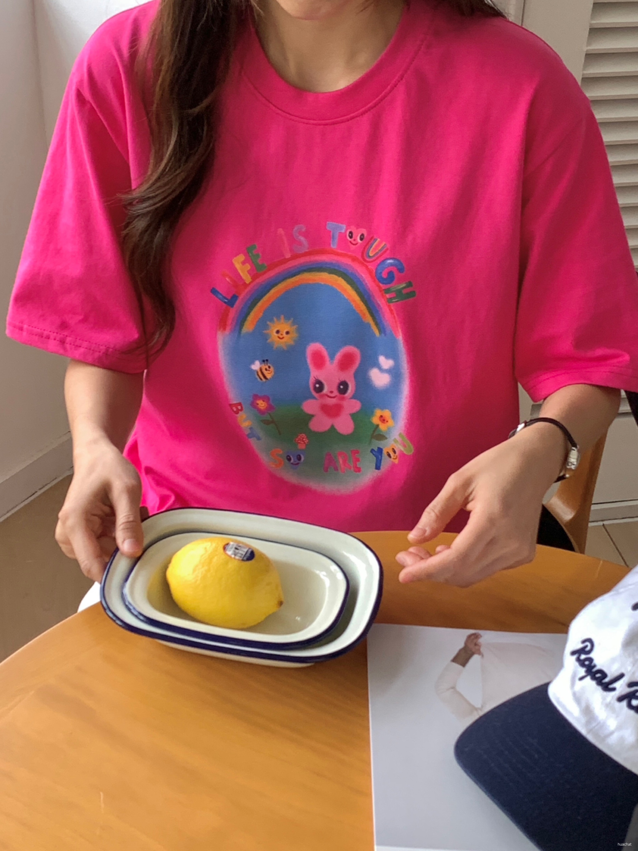 무지개토끼반팔T