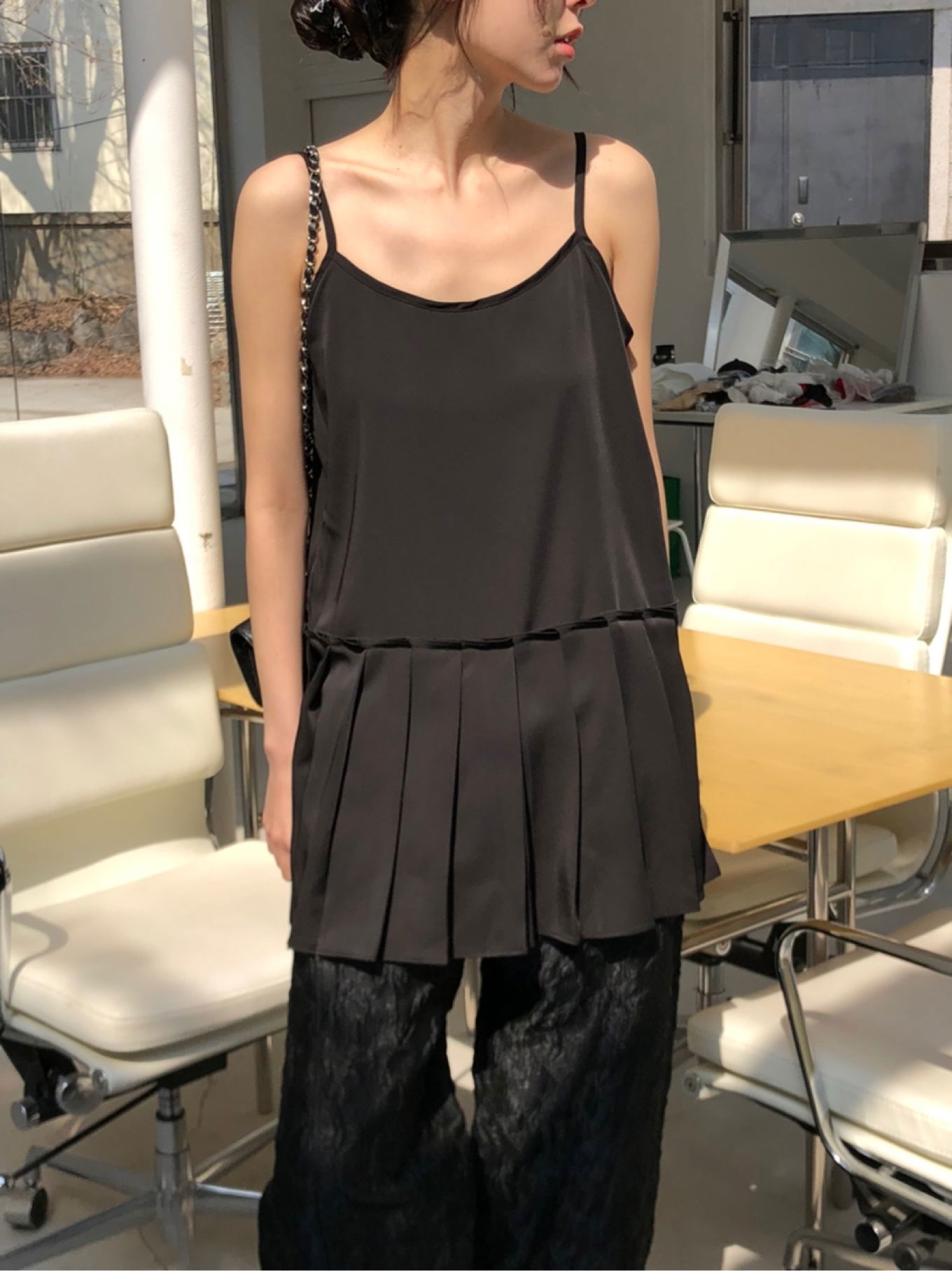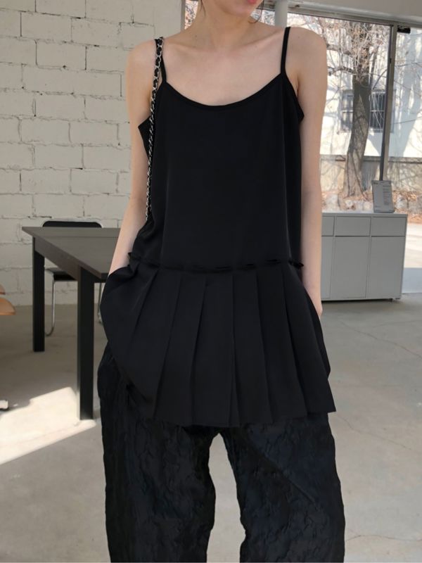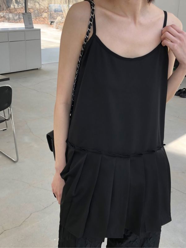 아이검정앞쪽주름이절개되어있는나시