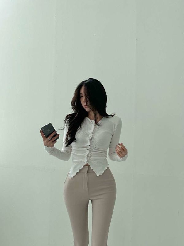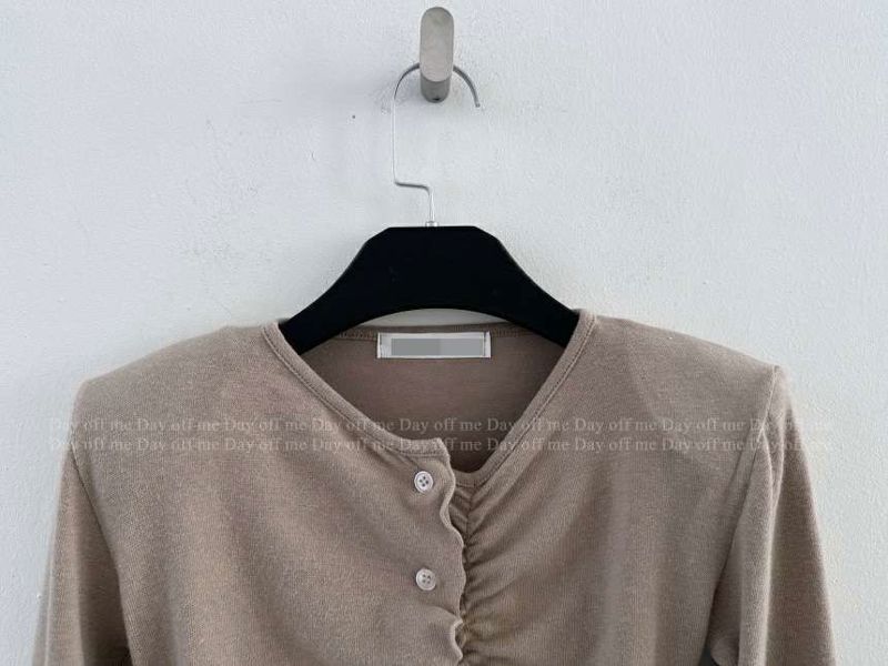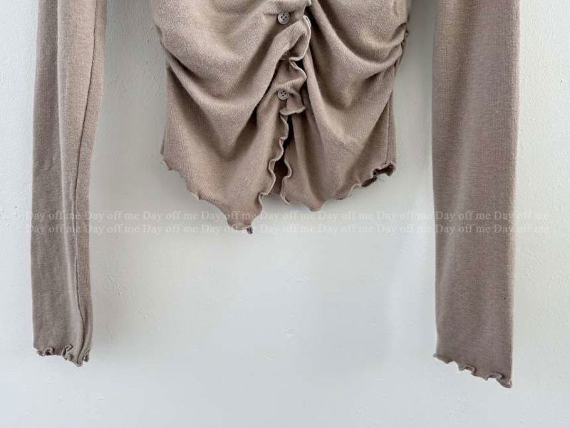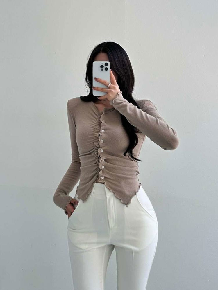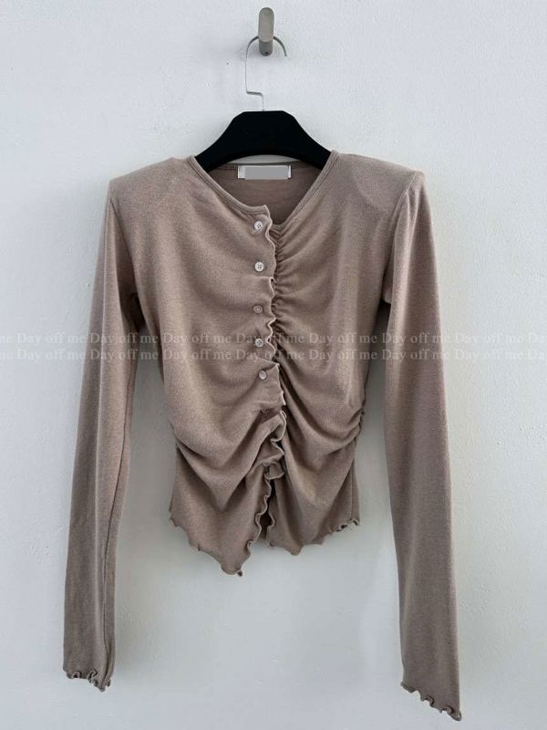 波浪褶垫肩修身上衣마레프릴가디건