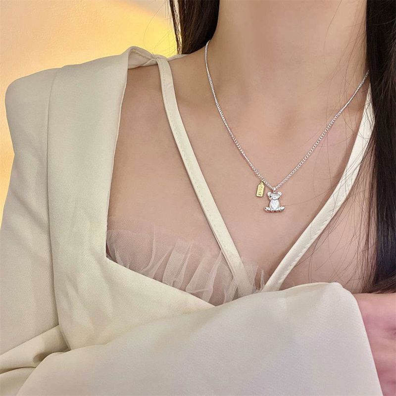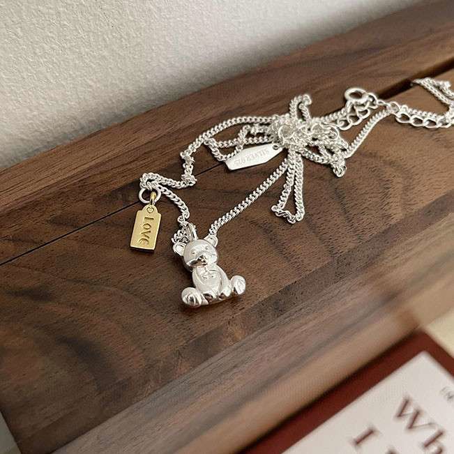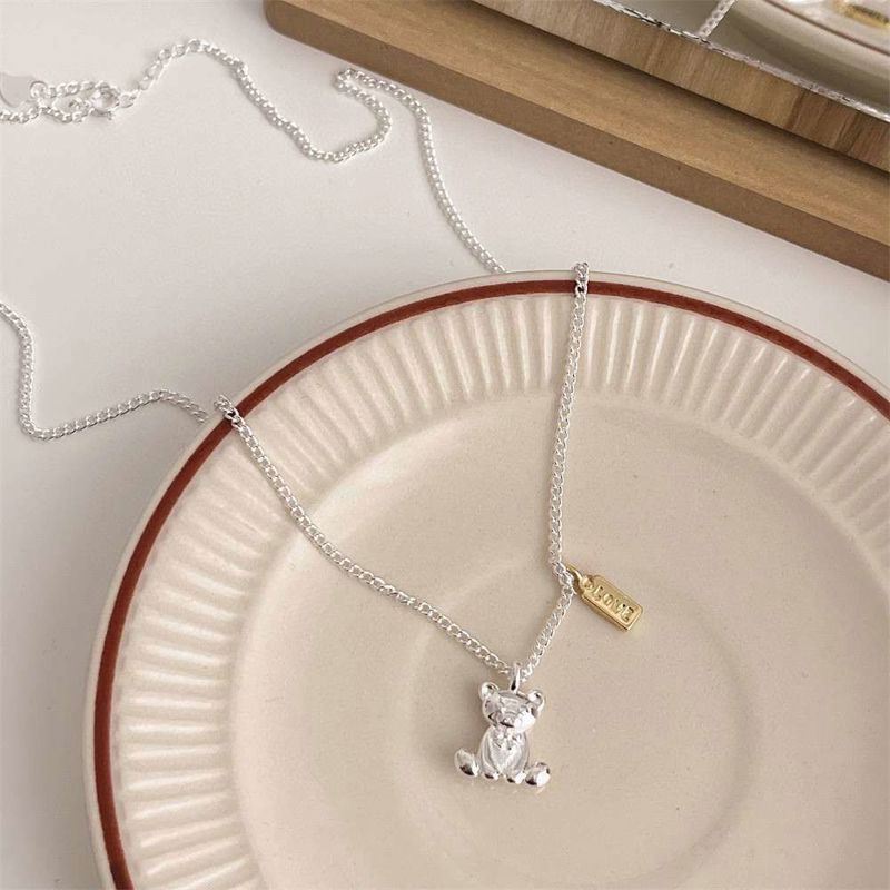 Ne074 925 可爱银饰小熊项链