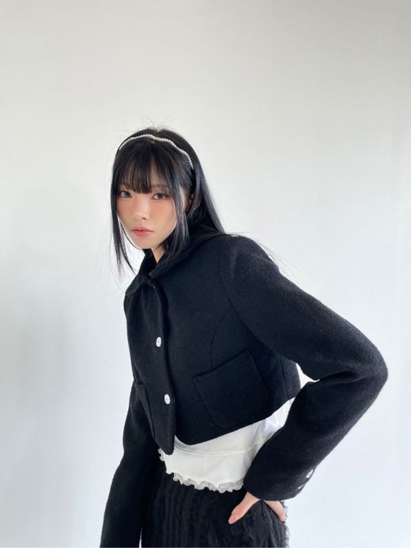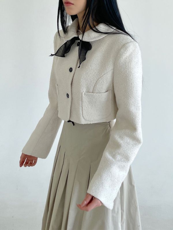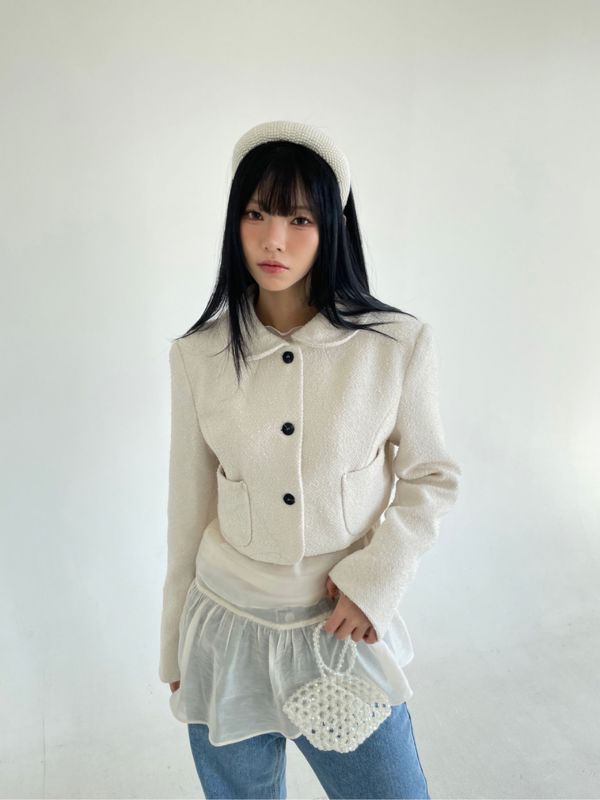 라운드넥 크롭 트위드자켓