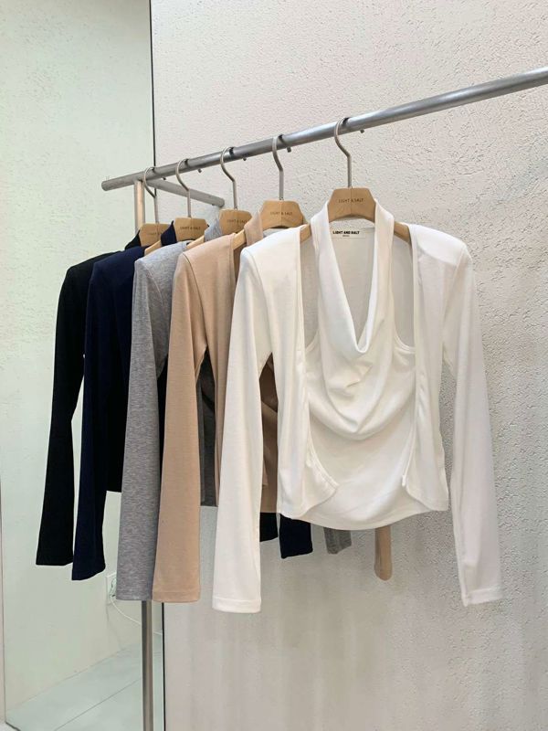 假两件开衫上衣망고 홀터 가디건