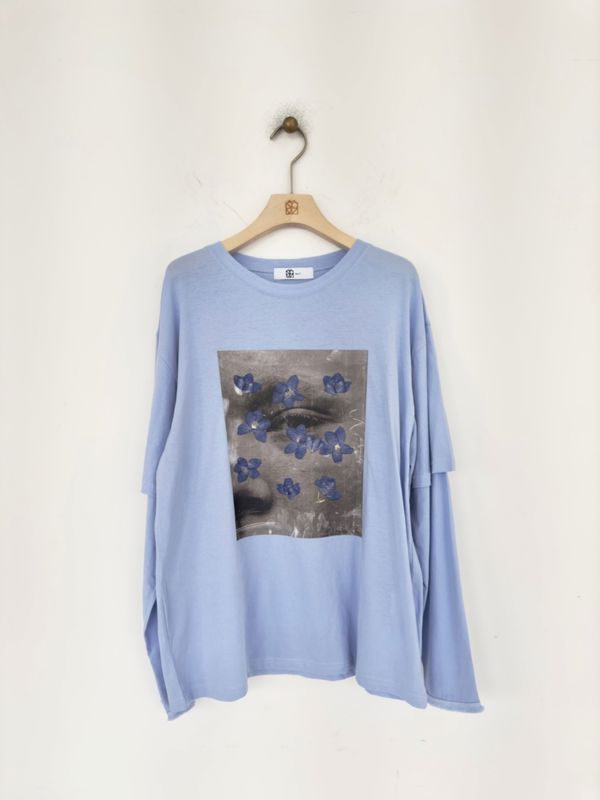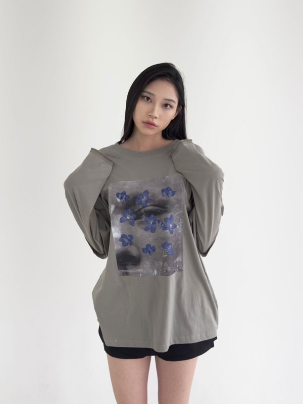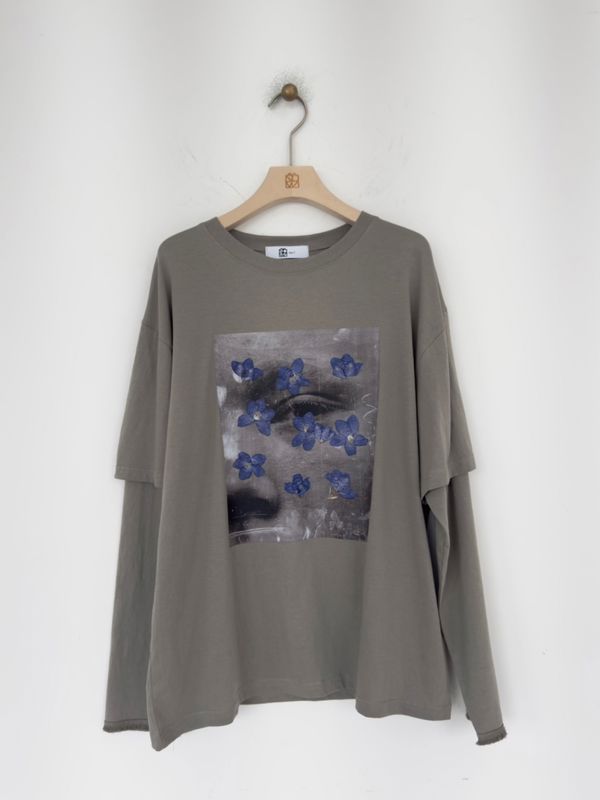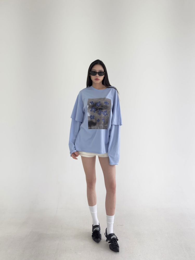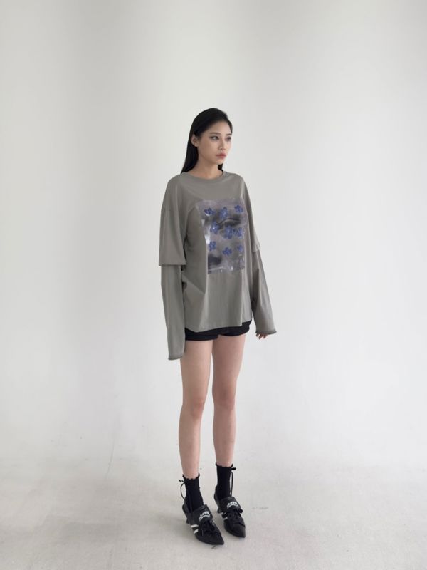 레이어드한 느낌의 루즈한 티셔츠입니다