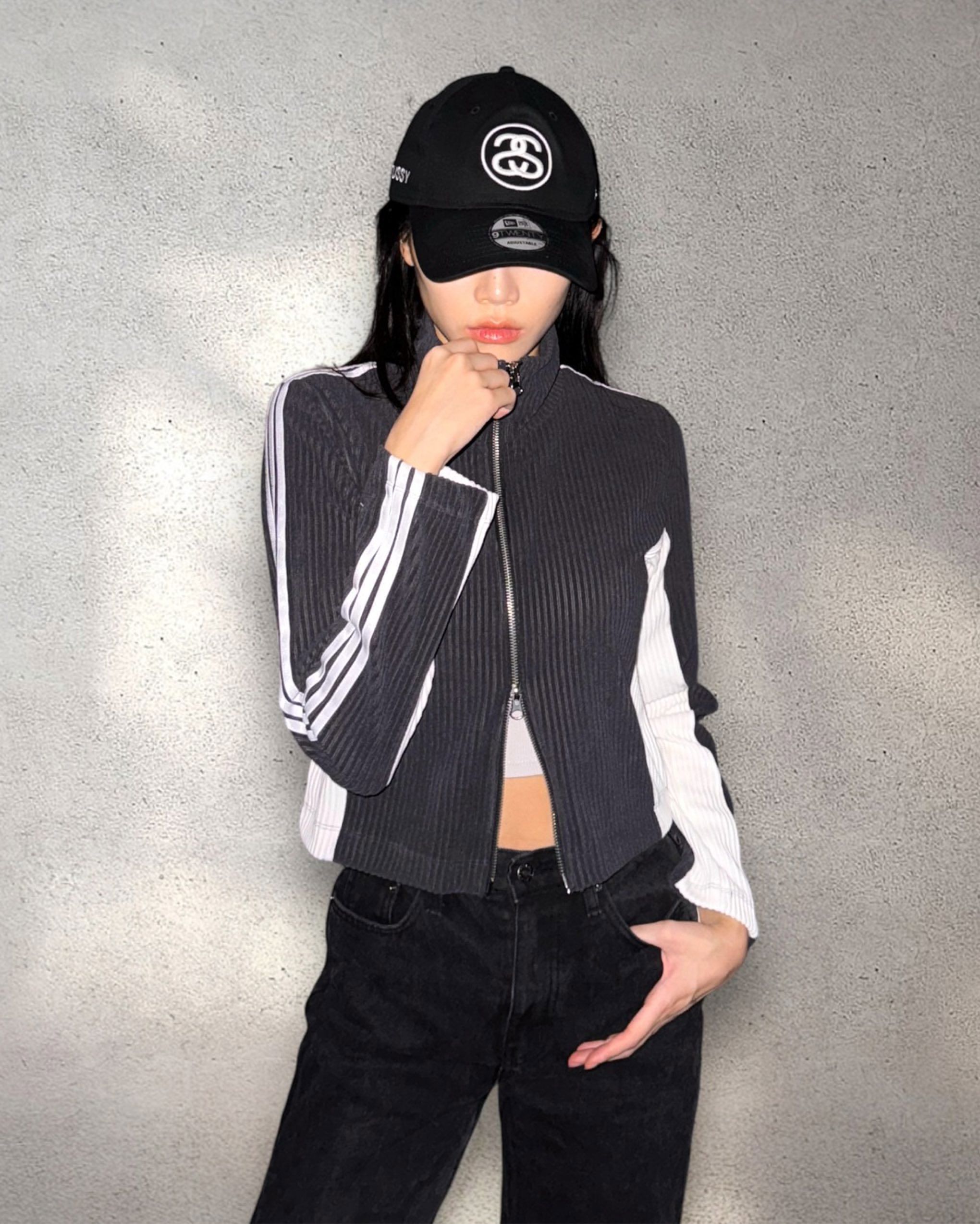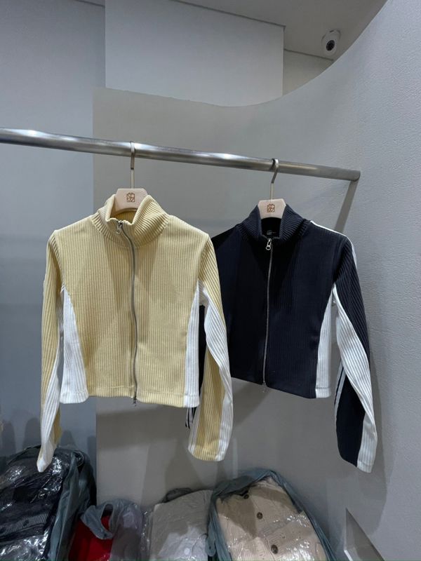 배색이 포인트인 골지 집업입니다