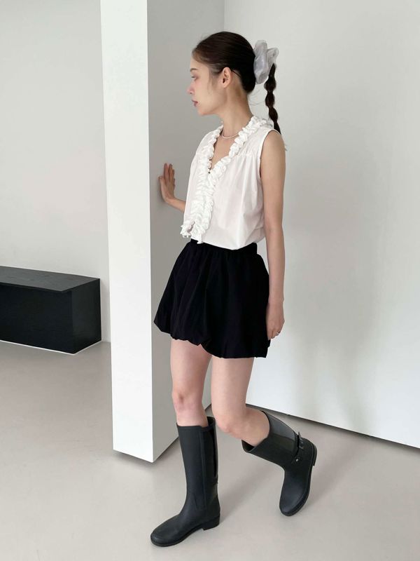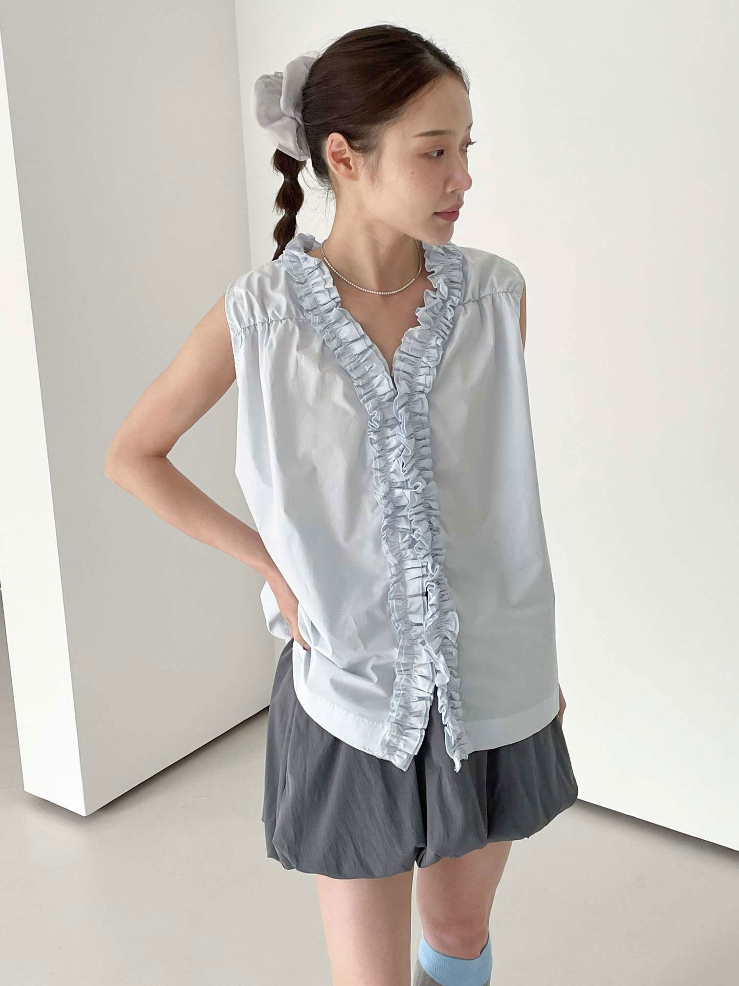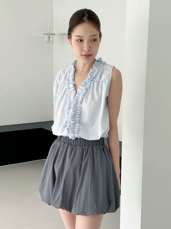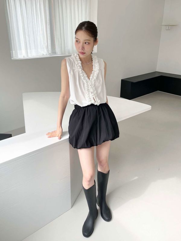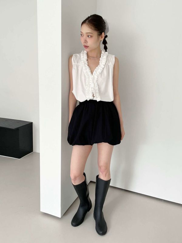 올해 트렌드인 프릴이 입체감있게 잡힌 나시 블라우스입니다 翻译