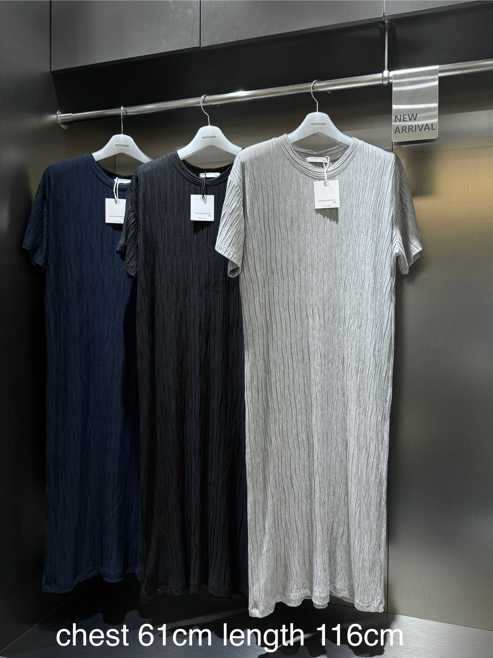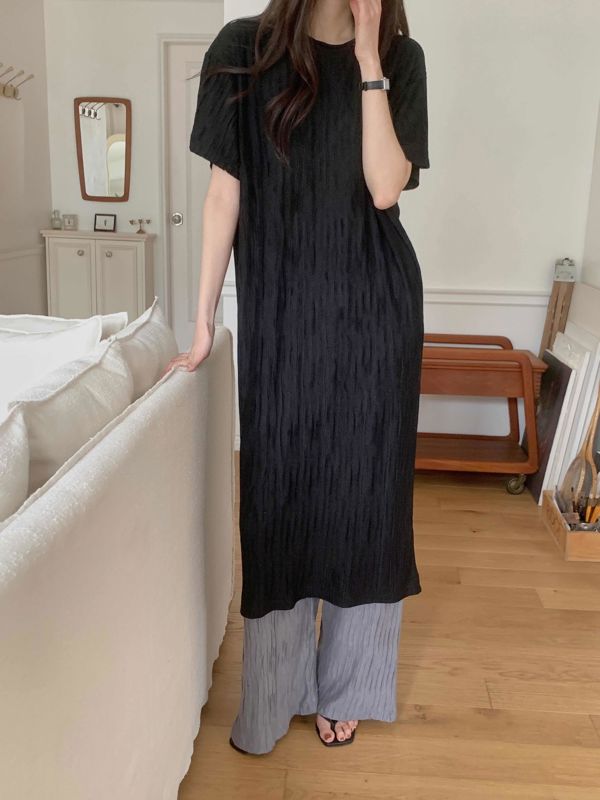 이 제품은 고급스러운 주름 텍스처가 특징인 오버사이즈 롱 원피스입니다.