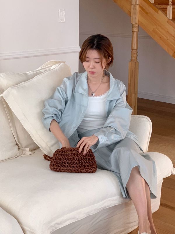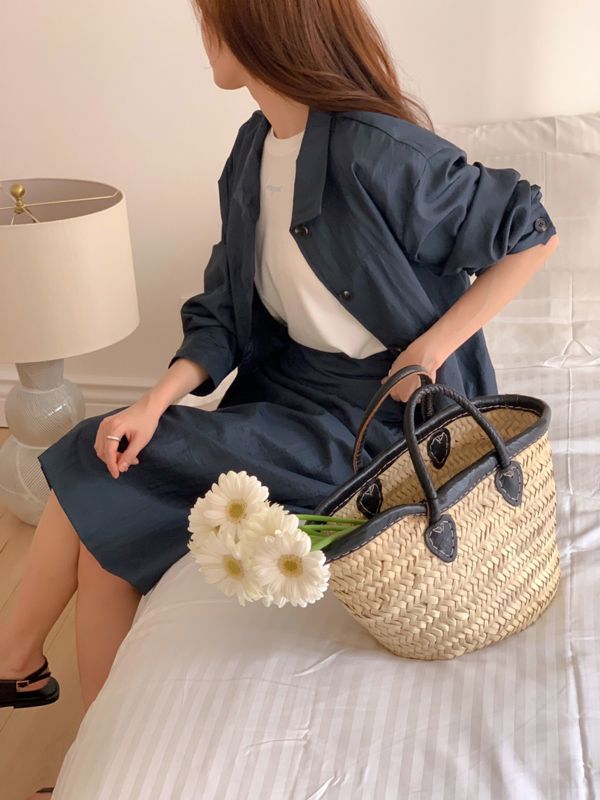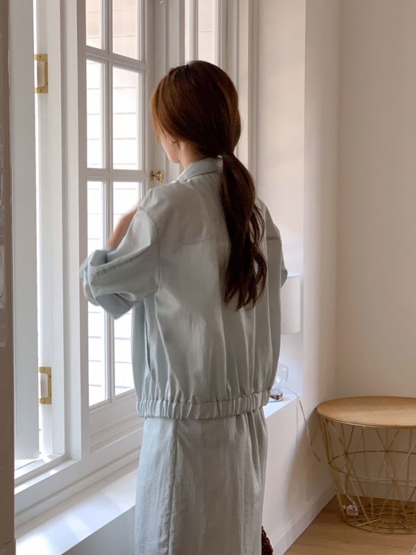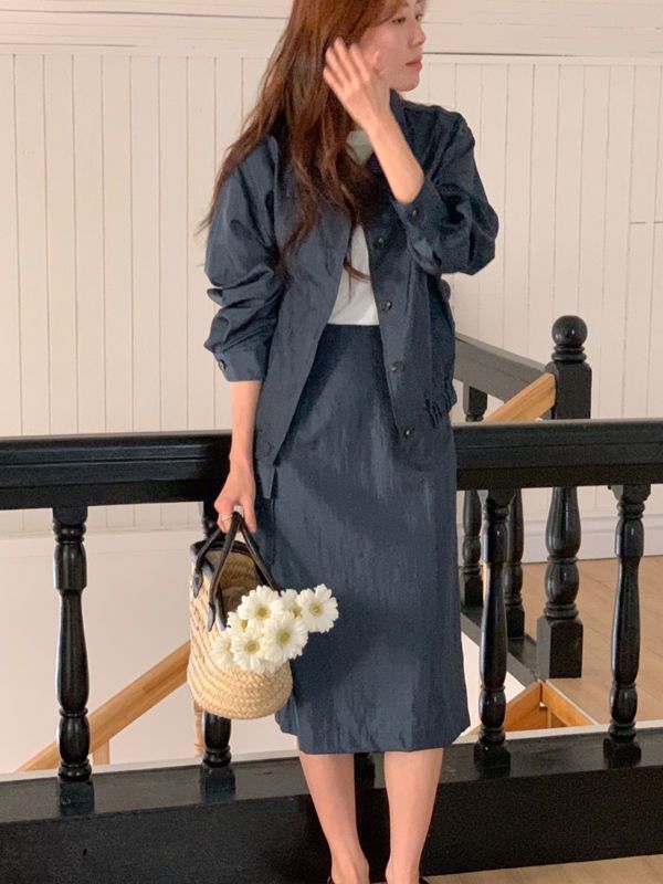 夏季夹克和裙子套装。