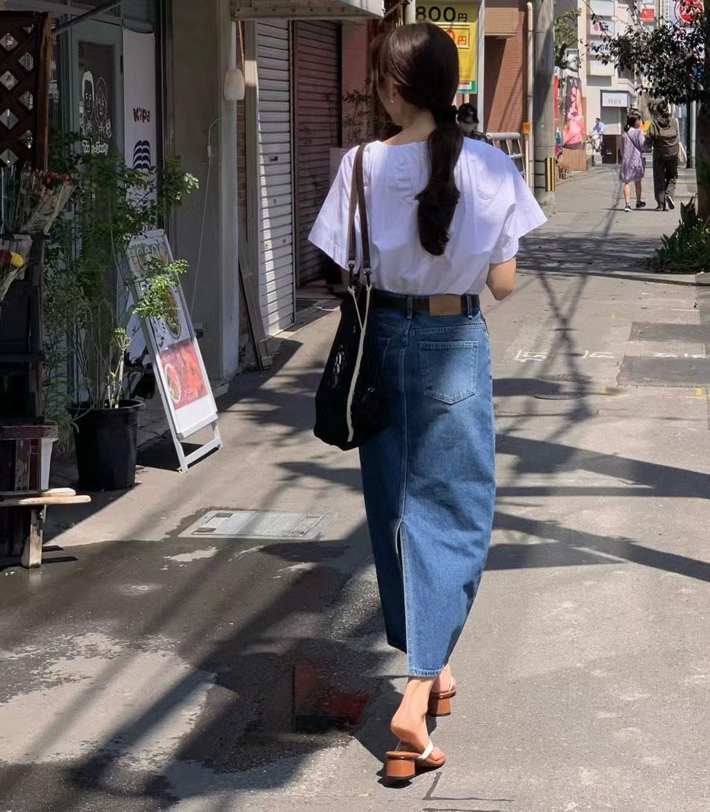 Ayla back slit denim skirt