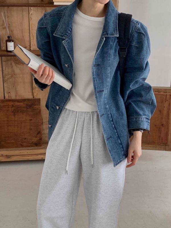 이 제품은 트렌디한 오버핏 데님 자켓으로, 다음과 같은 특징이 있습니다: