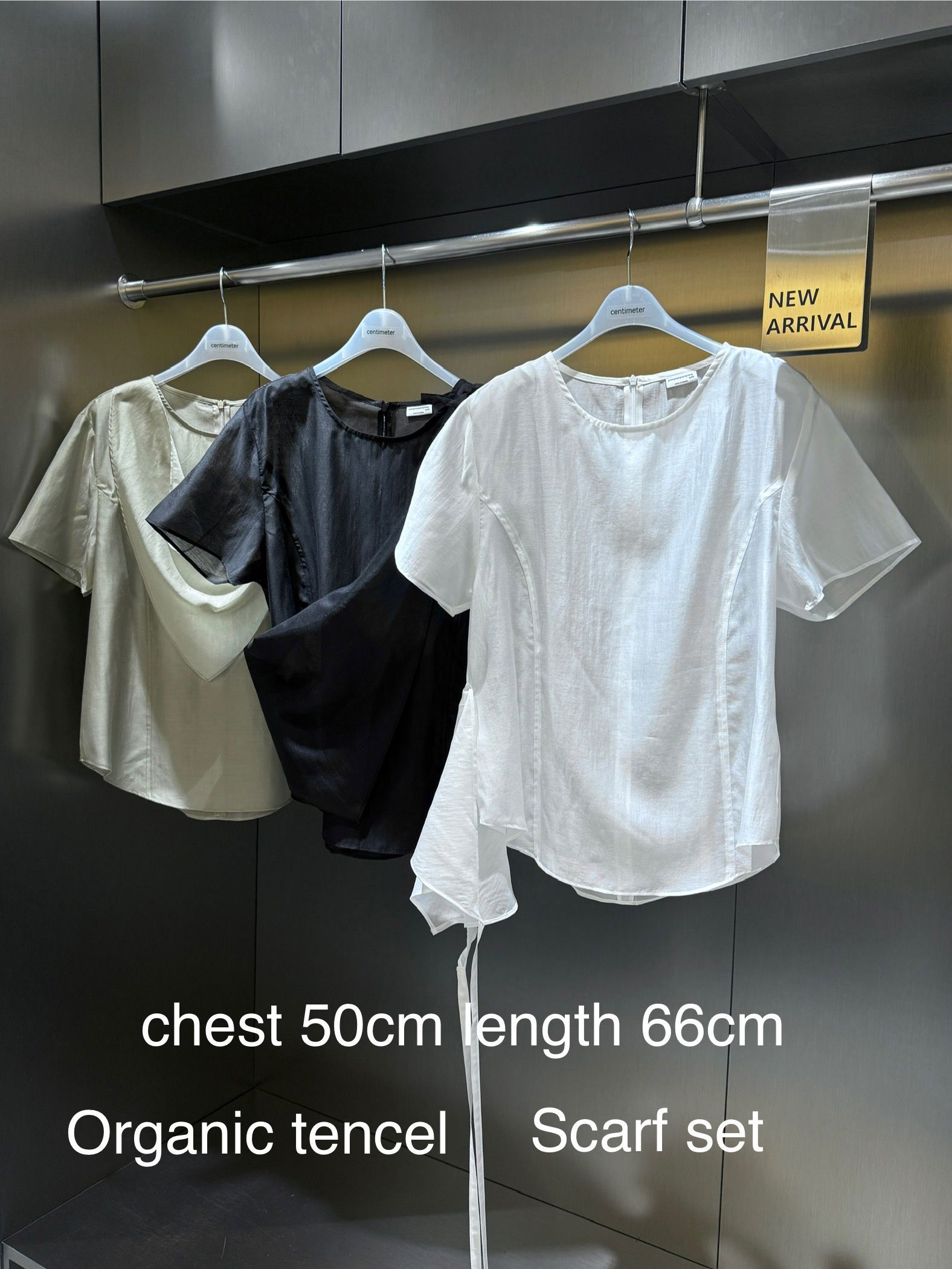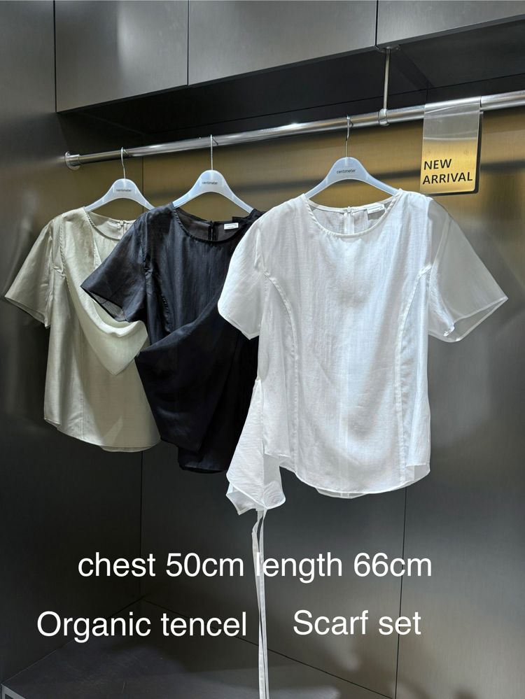 세련된 오가닉 텐셀 소재의 스카프 세트 블라우스입니다. 제품의 주요 특징과 디테일을 상세히 설명해 드리겠습니다: