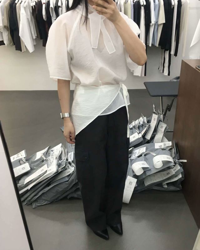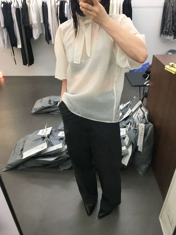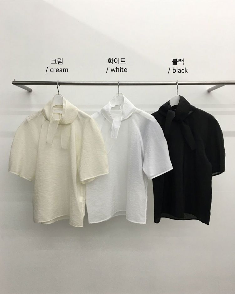 벌룬소매 타이 블라우스