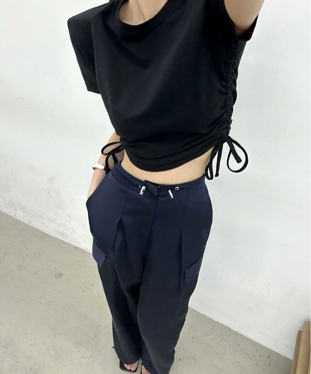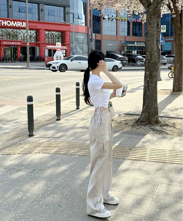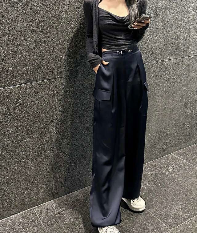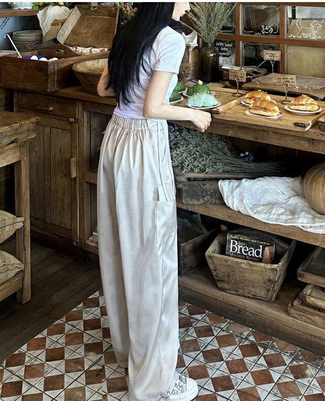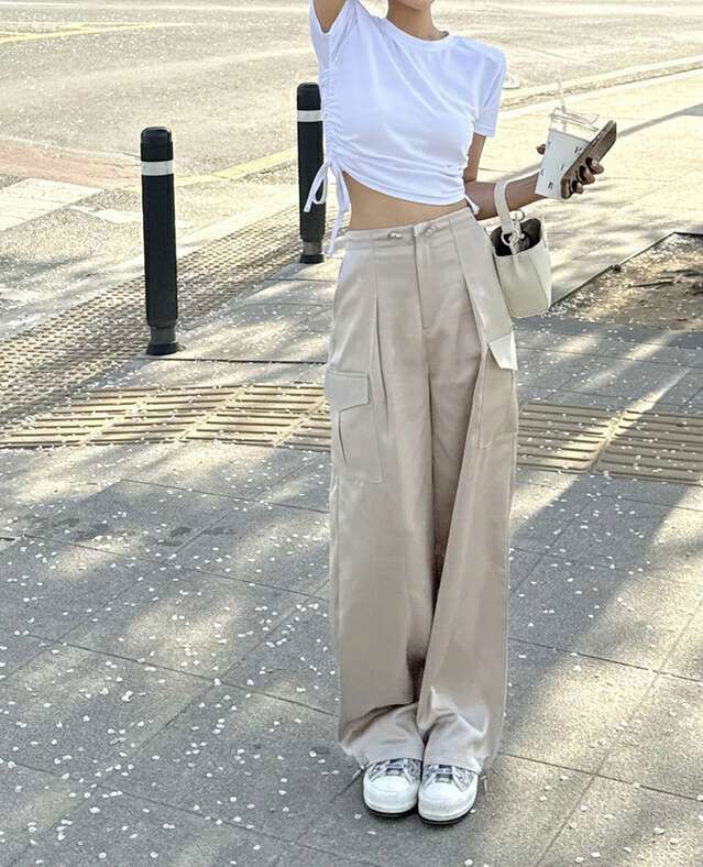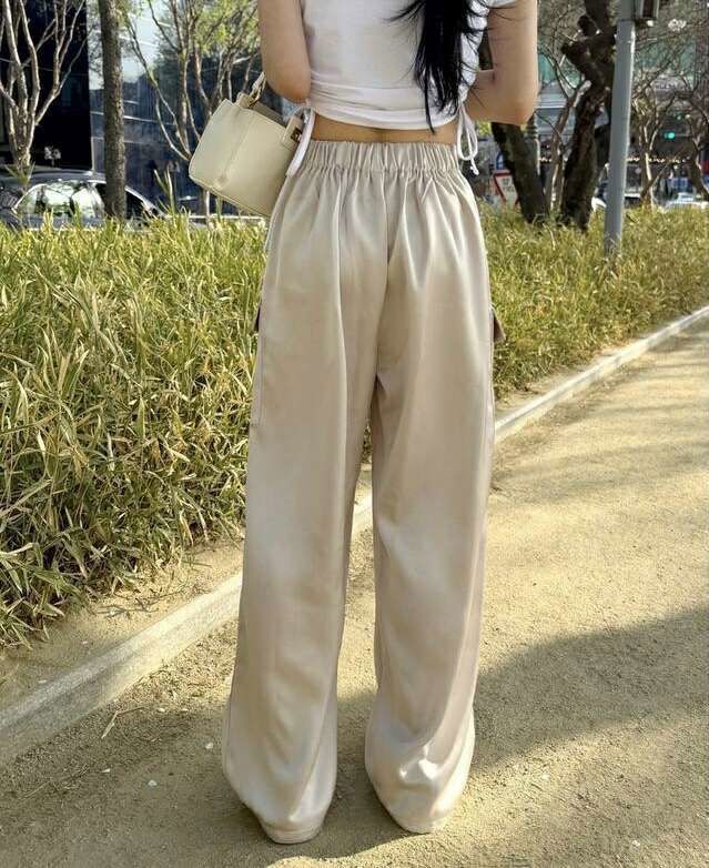 后腰松紧阔腿两穿休闲裤새틴 카고 투웨이팬츠