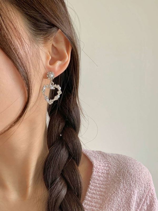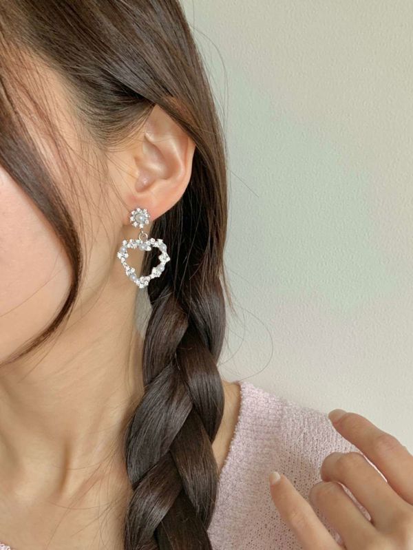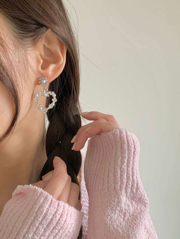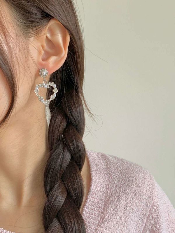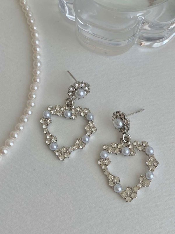 E841. 爱心水钻珍珠耳环 ₩6000