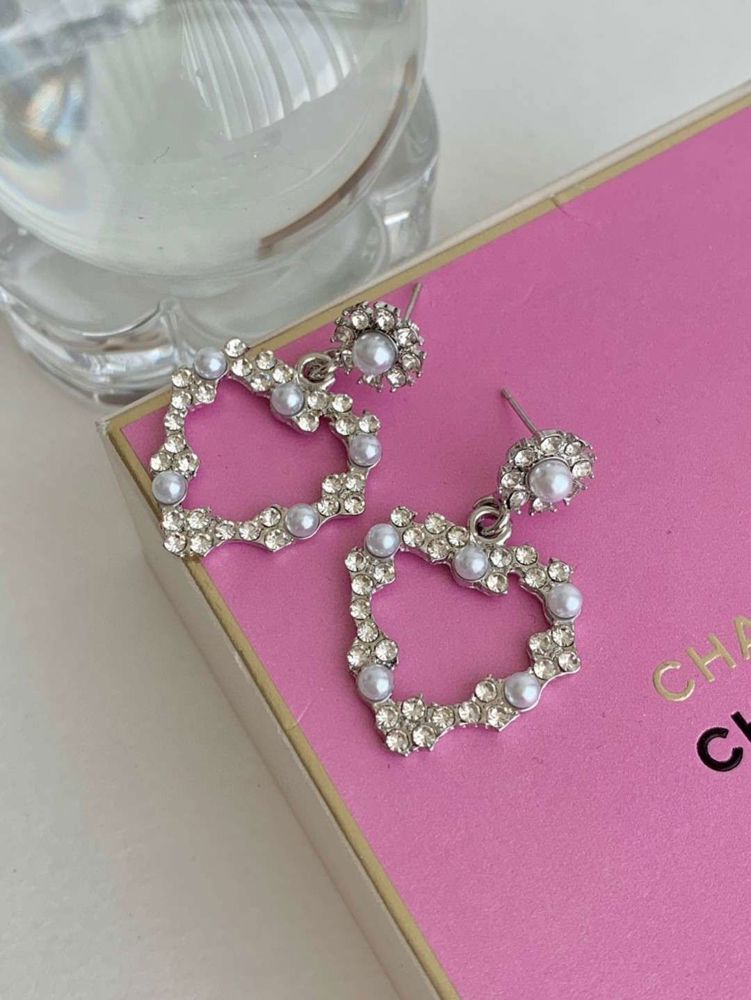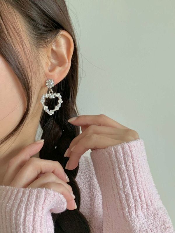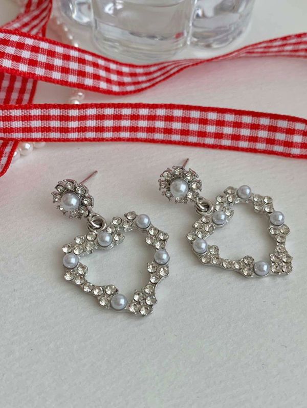 E841. 爱心水钻珍珠耳环