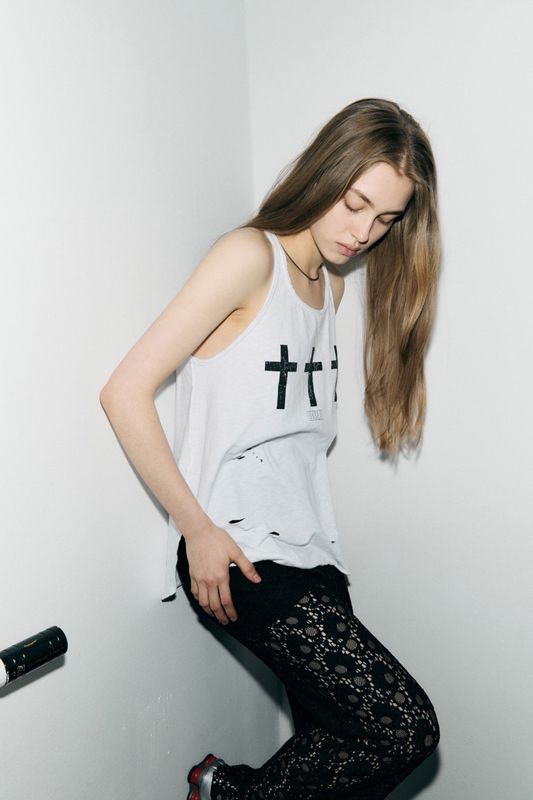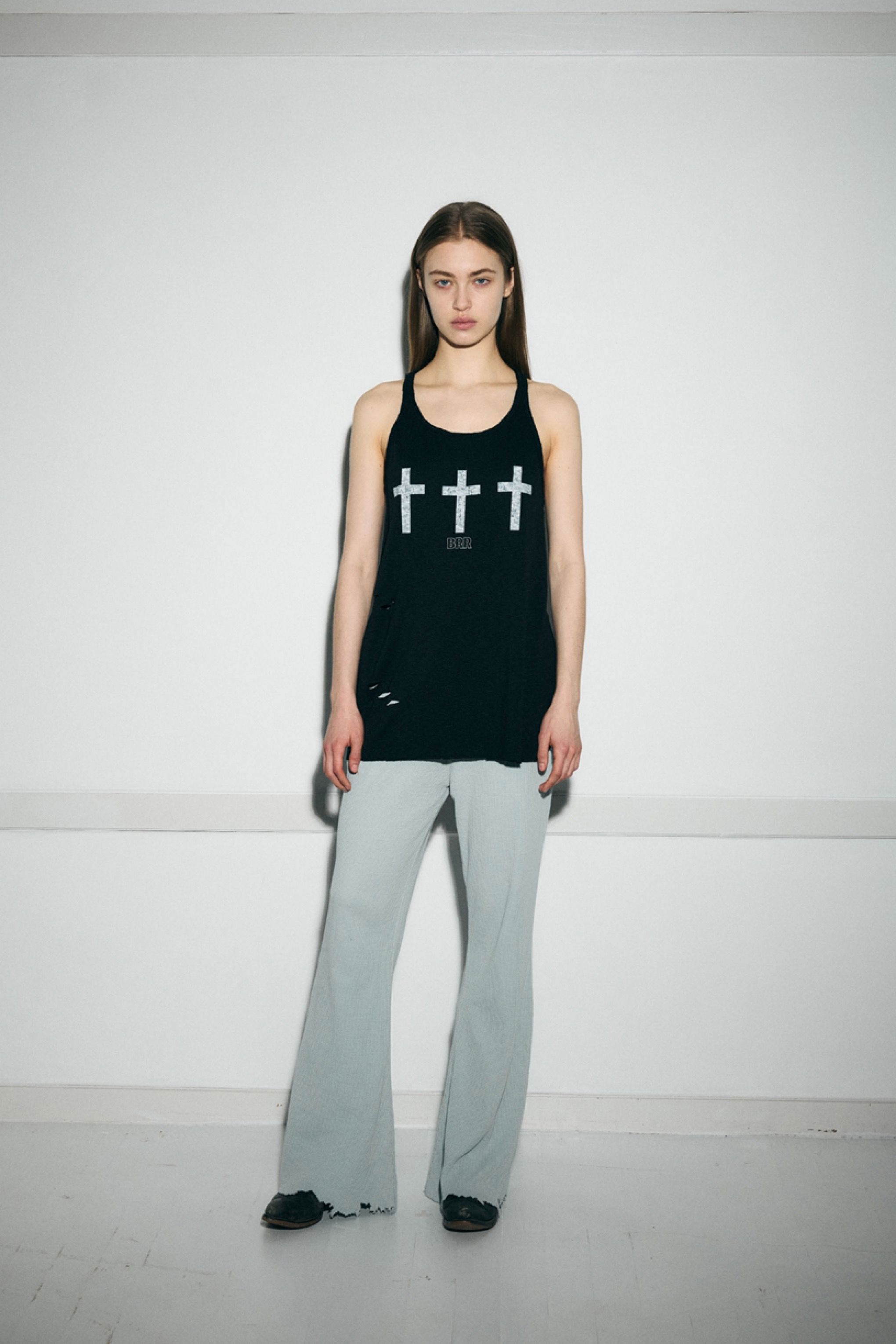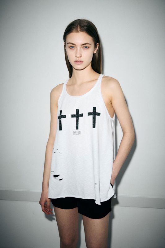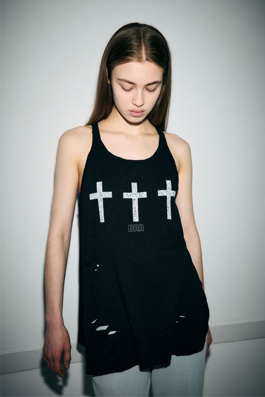•十字印花设计,展现朋克风格的无袖上衣
