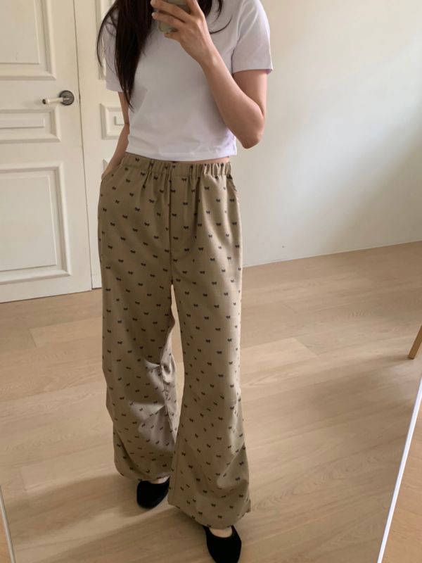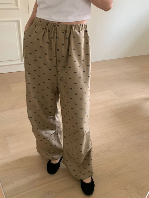 러블리 리본 프린팅 팬츠