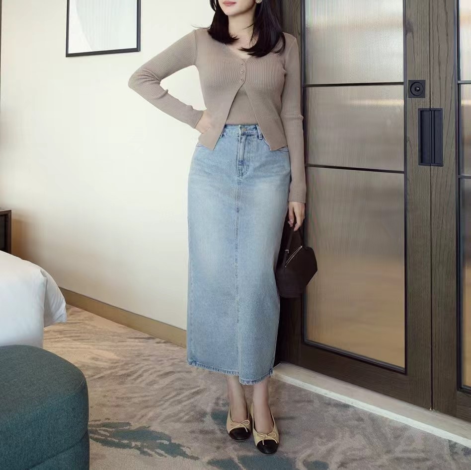 Ayla back slit denim skirt