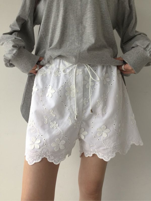 Flower lace short pants