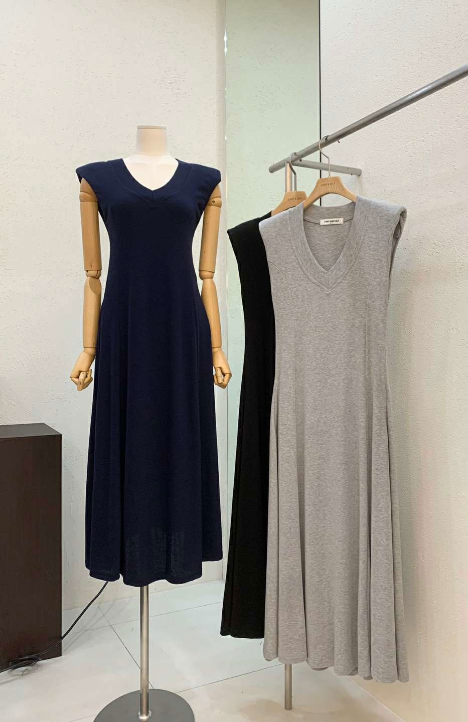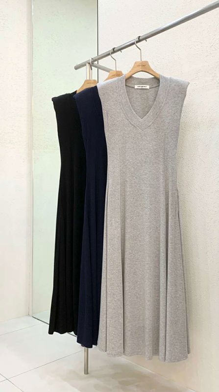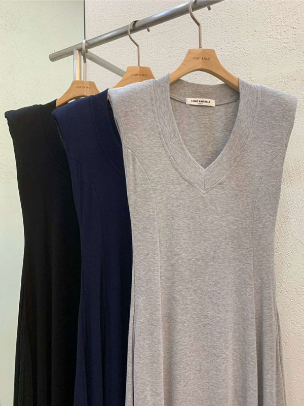 v领垫肩长连衣裙쥬시 브이넥 롱원피스