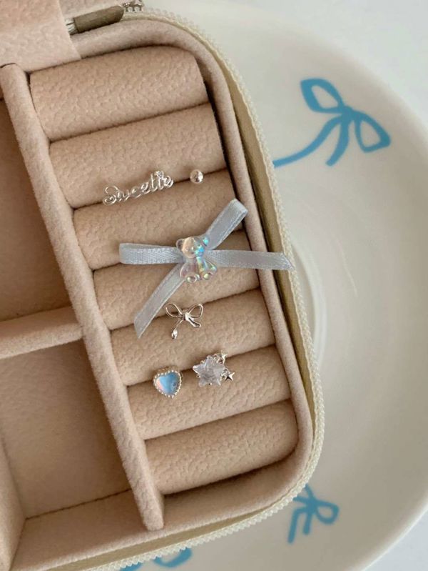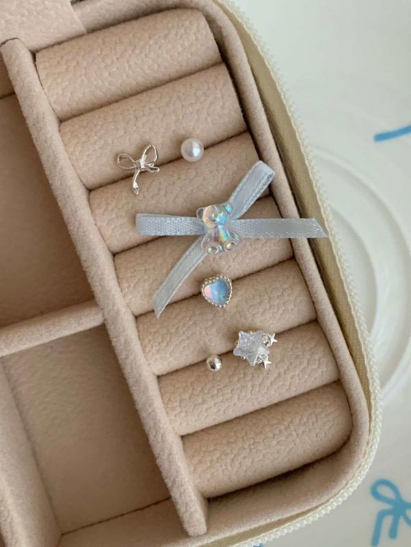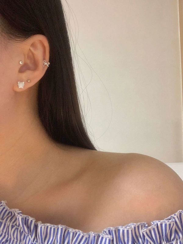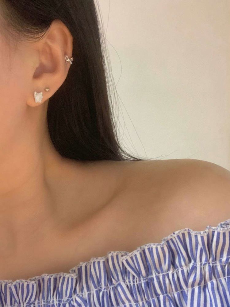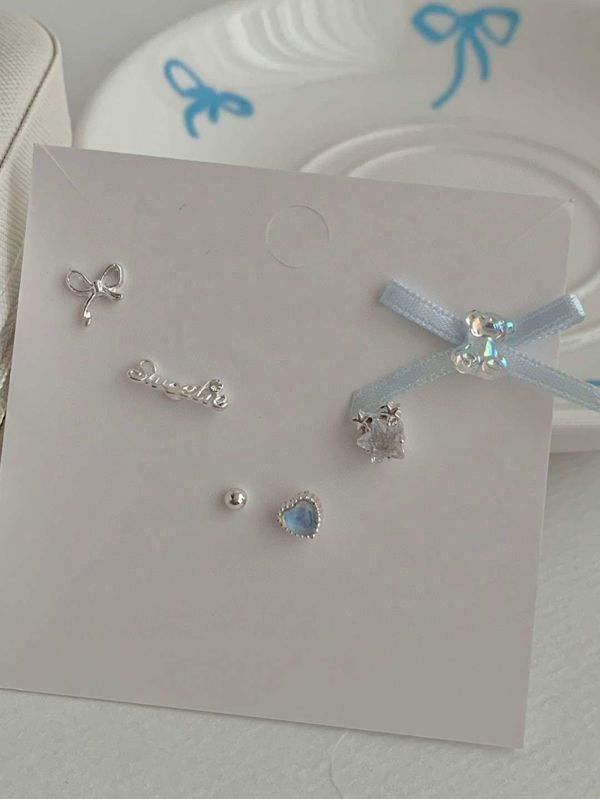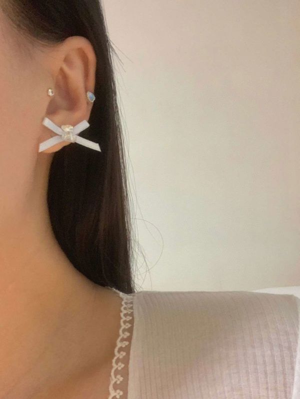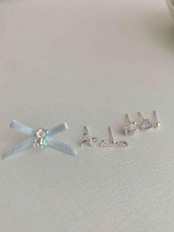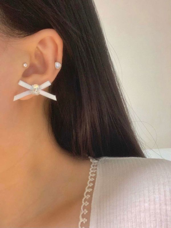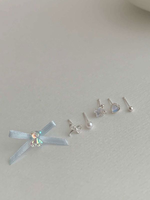 E787 蝴蝶结珍珠耳钉套装 ₩5000