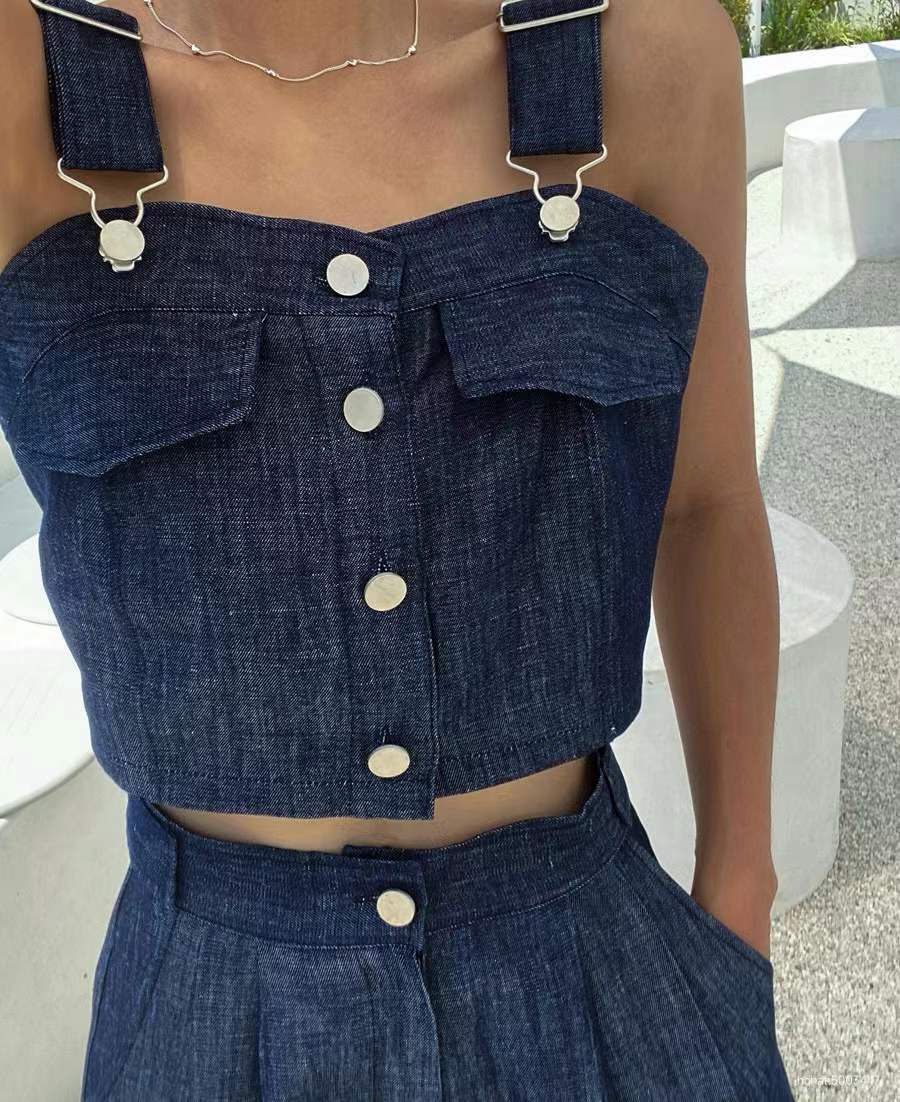 크롭청베스트set