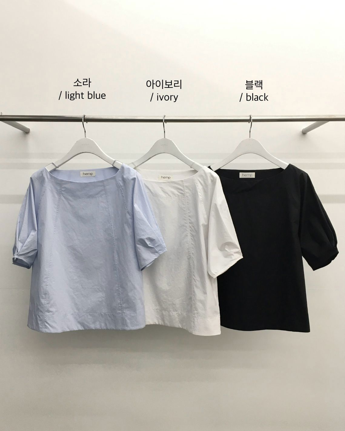 나그랑 반팔 퍼프 블라우스