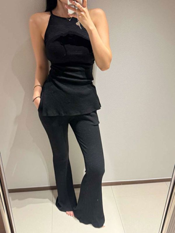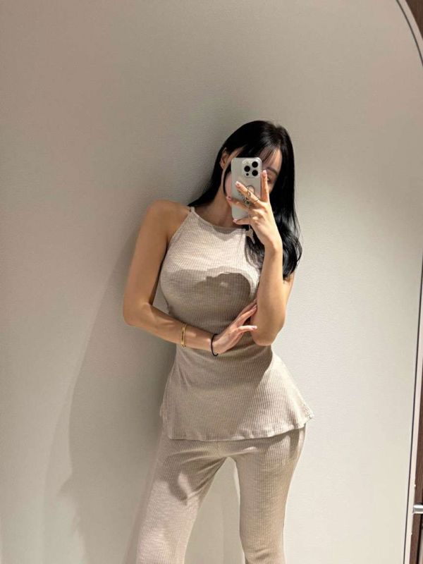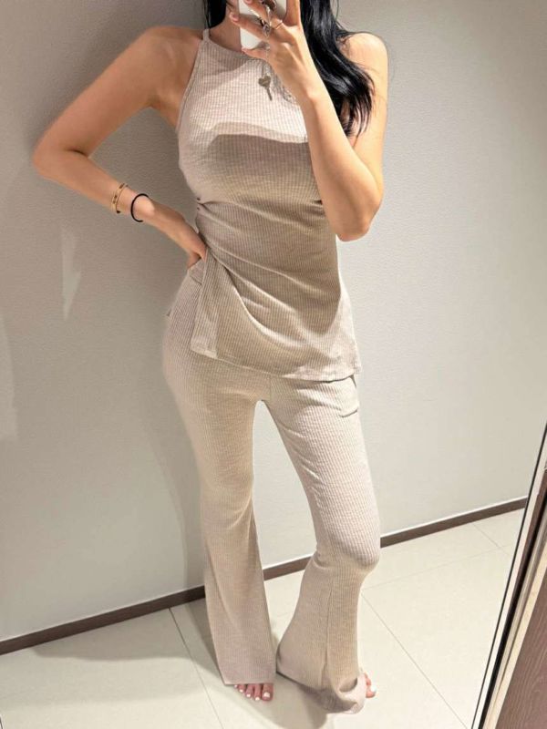 修身吊带喇叭裤套装베리 투피스 셋트