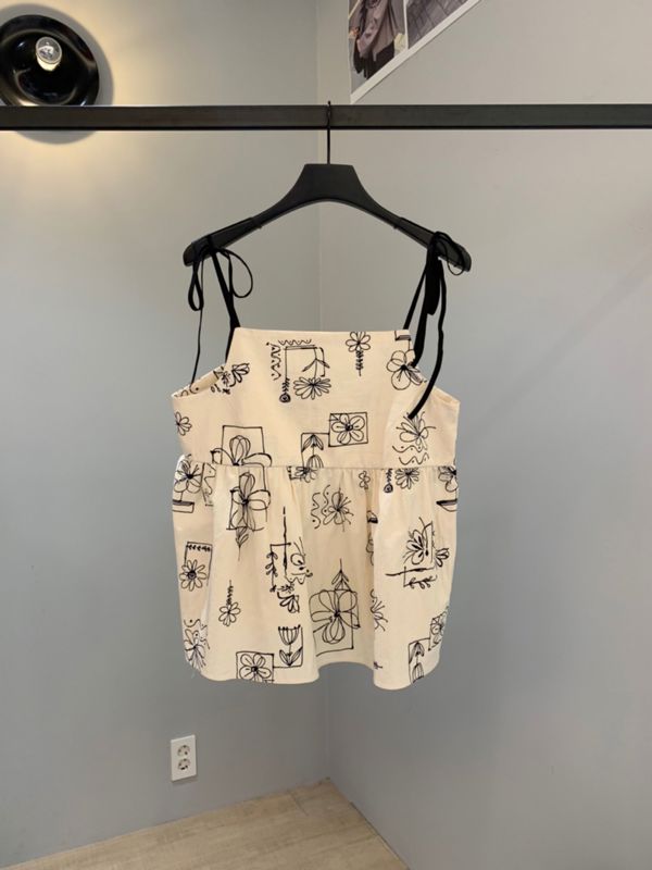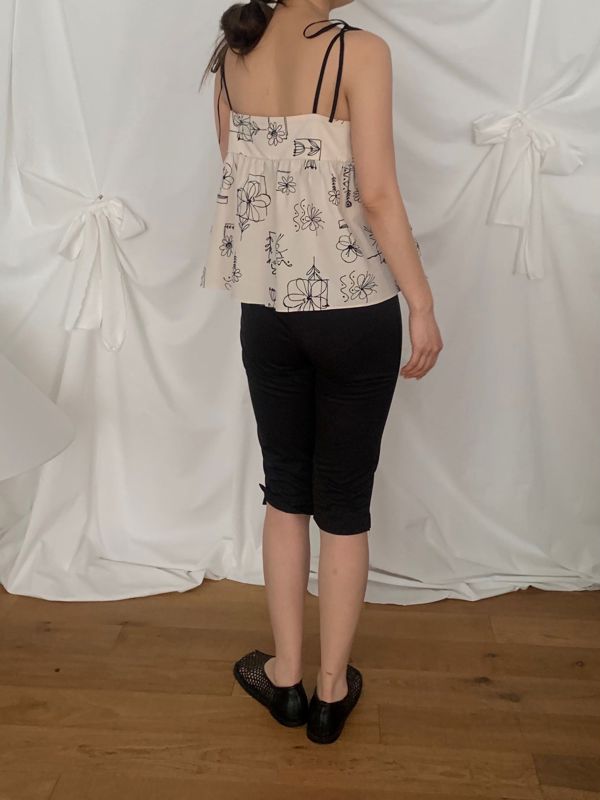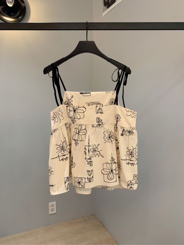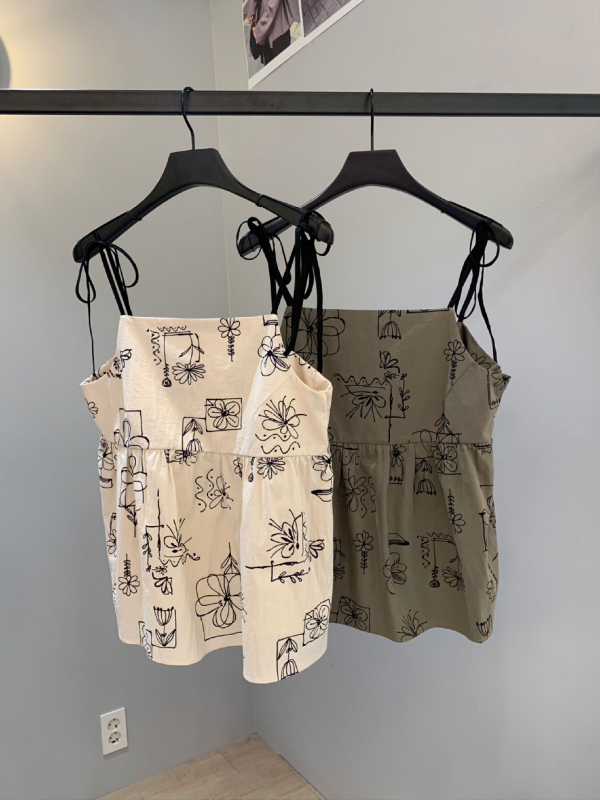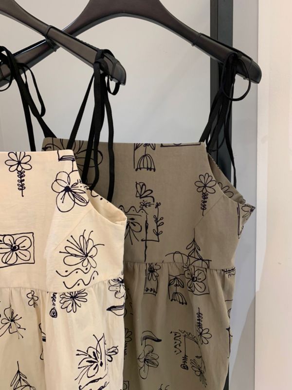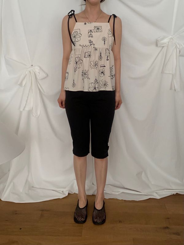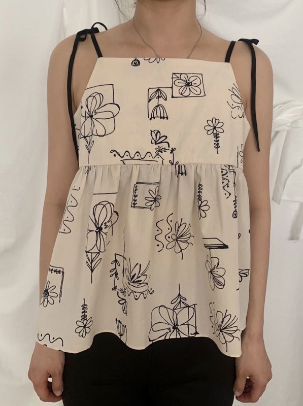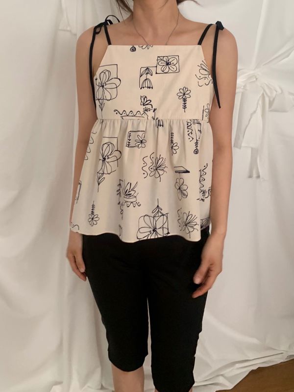 원하는 넥파임을 조절할 수 있는 플라워 프린팅 코튼 탑
